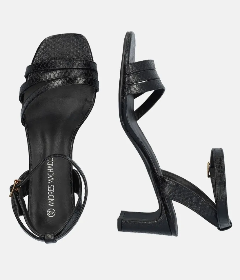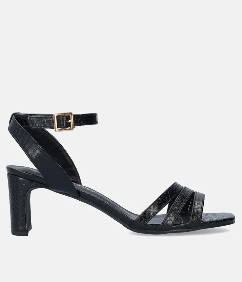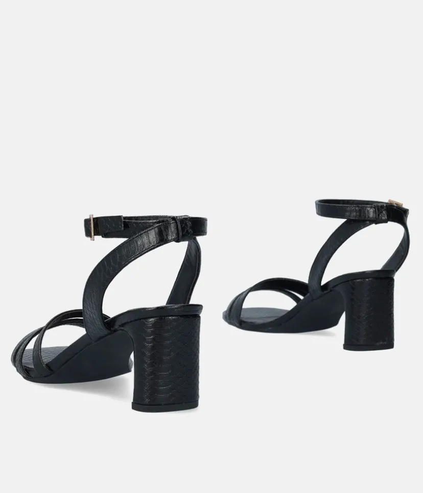 Party the night away in these snake print heels, with an elasticated buckle and adjustable straps, square toe, and slim block heel complete in a leather look finish. Pair with your choice of dress and a clutch bag.