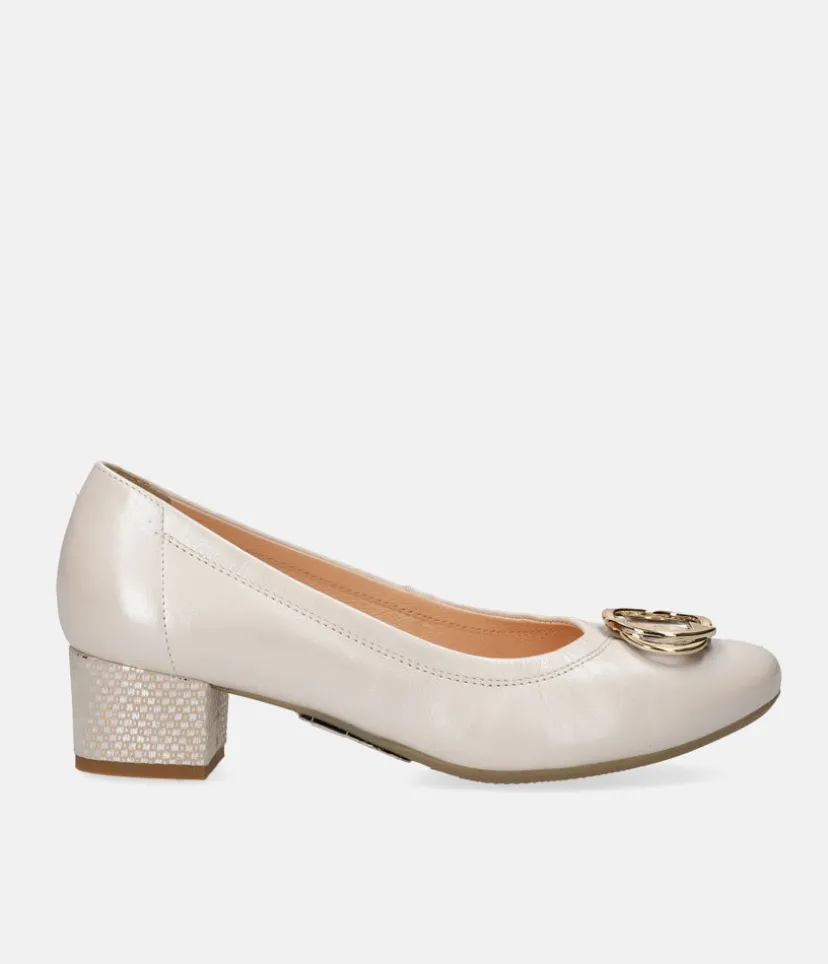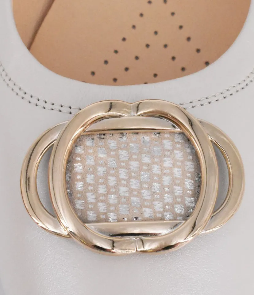 Step up your Style game with Bioeco by Arka Shimmer Low Block Heel Shoes. Crafted from premium quality leather, these shoes showcase a subtle shimmer, decorative buckle and boast a sturdy low block heel. Treat yourself to superior comfort with the soft step system and cushioned leather insole. Pair with this Bioeco Pearl and Beige Clutch Bag.