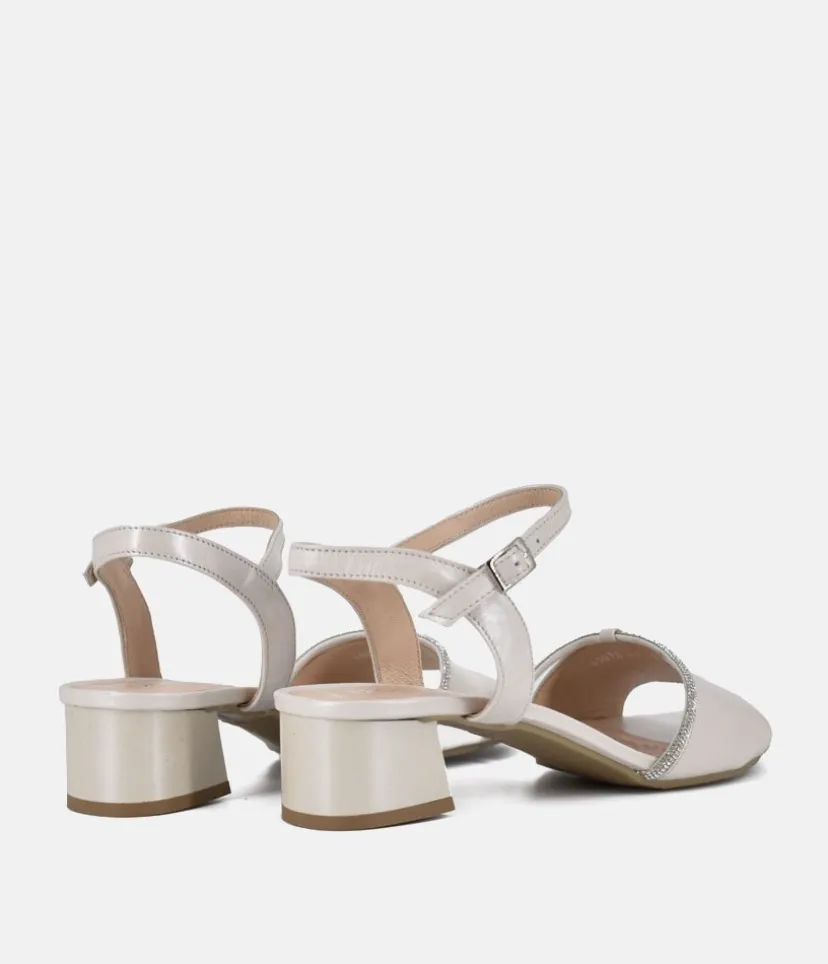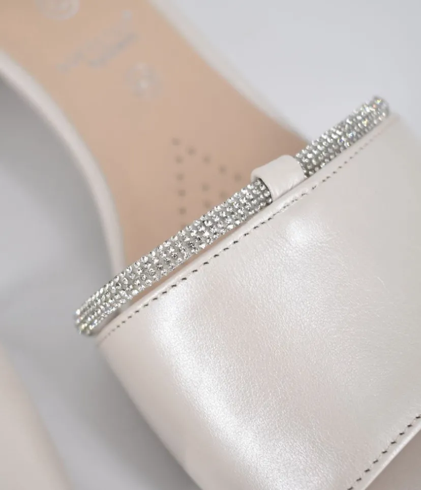 Step into timeless elegance and ultimate comfort with these Bioeco by Arka Leather Block Heel Sandals. Featuring a sleek pearl upper and a stunning silver diamante strap, this shoe is equipped with Soft Step System for a flexible and durable sole, as well as a cushioned leather insole for added comfort all day long.