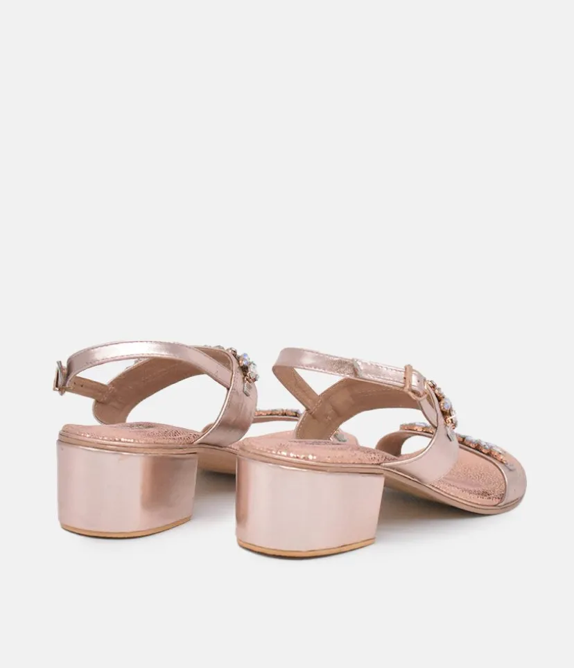 These are a Fabulous Rose Gold Embellished Sandal from BOTTEGA with a Block Heel and made with 100% leather. Featuring a stunning Rose Gold finish this block heel design is perfect to take you from day to evening and the embellishments gives them a striking finish.