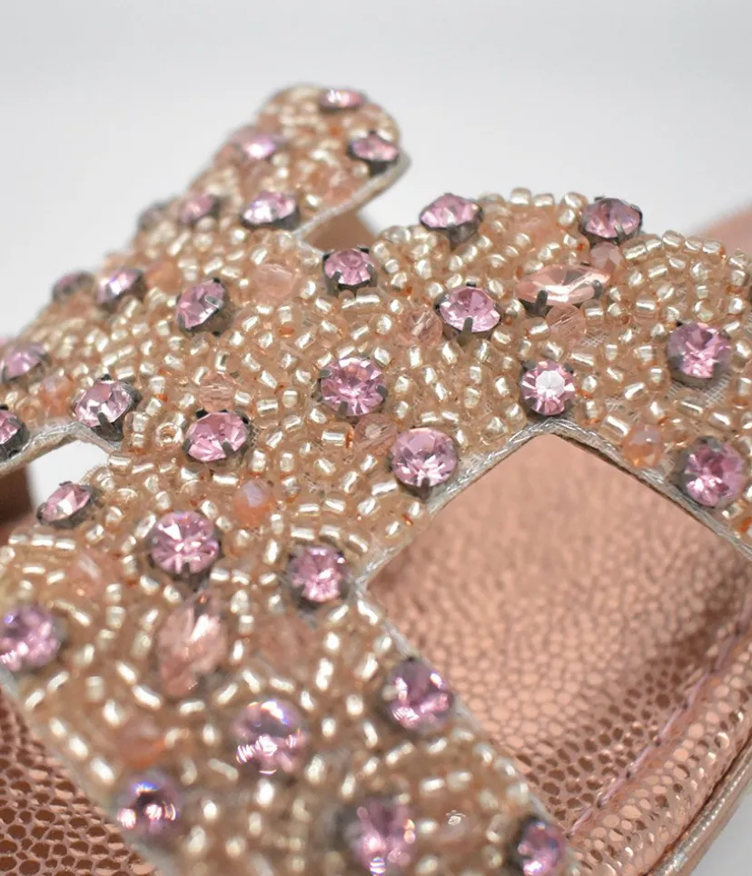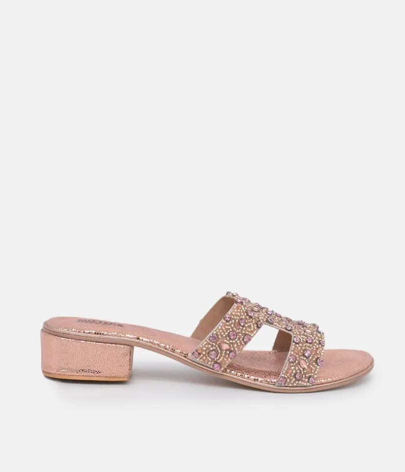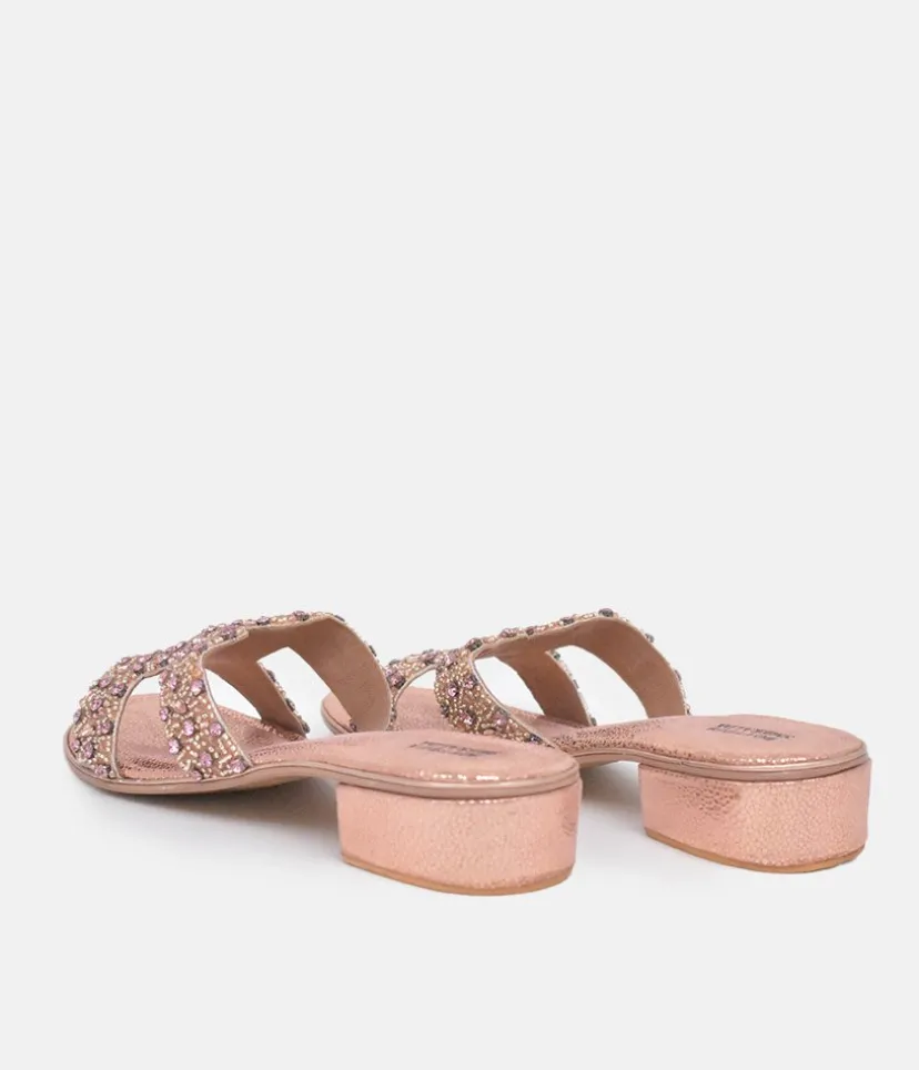 These Plush slip on Sandals are a stylish choice. Featuring a metallic finish with eye-catching decorative embellishments, a Block Heel and made with 100% leather. Great to dress up or down an outfit and easy to pair with Jeans or dresses.