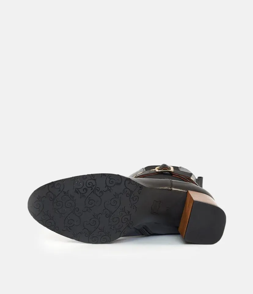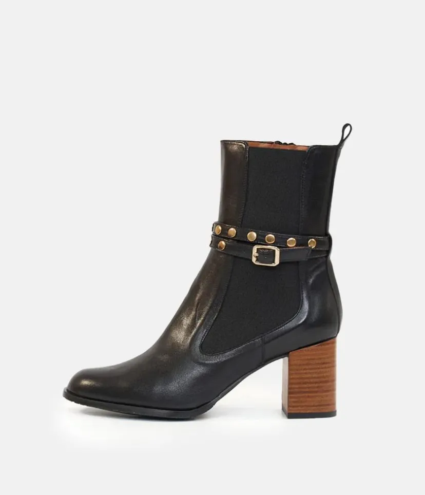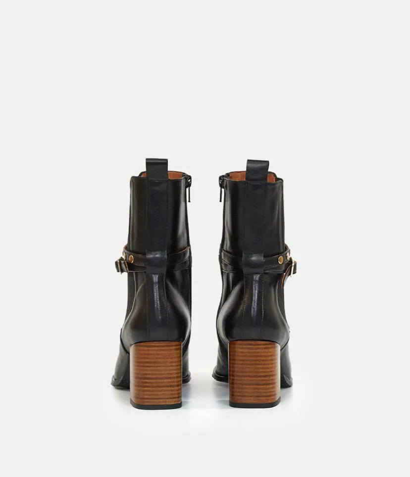 Handcrafted in Spain from a beautiful soft leather – these premium ankle boots offer a classic yet contemporary look. With a refined, almond toe shape and a 3 inch stacked wooden effect heel, these boots feature a leather sock for luxurious comfort and ensures a comfortable step.