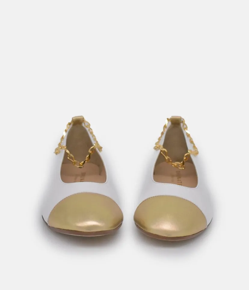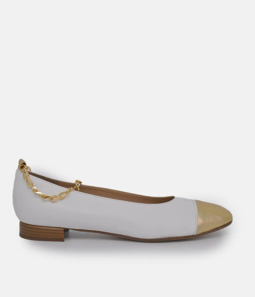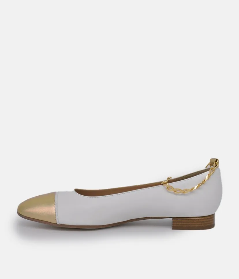 This is a Beautiful style from Brunate with a contrasting Gold and White Upper. The look is finished with an impressive ankle chain.