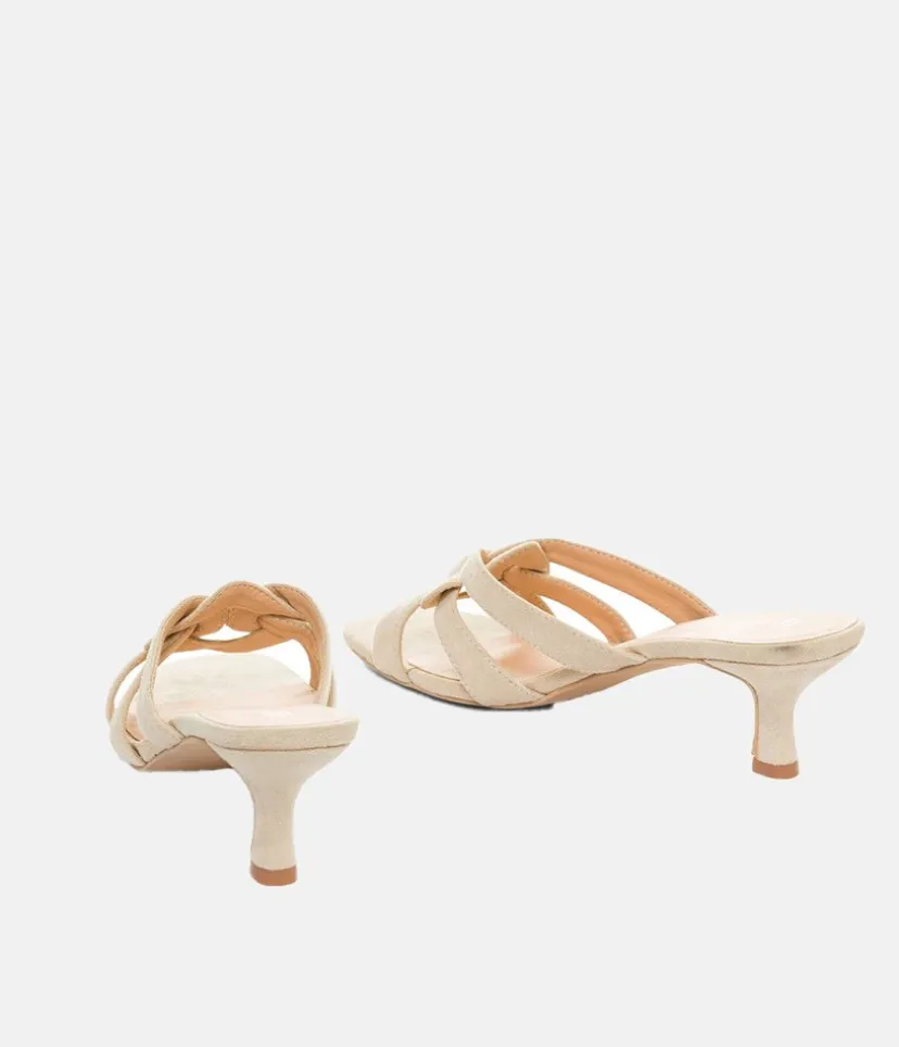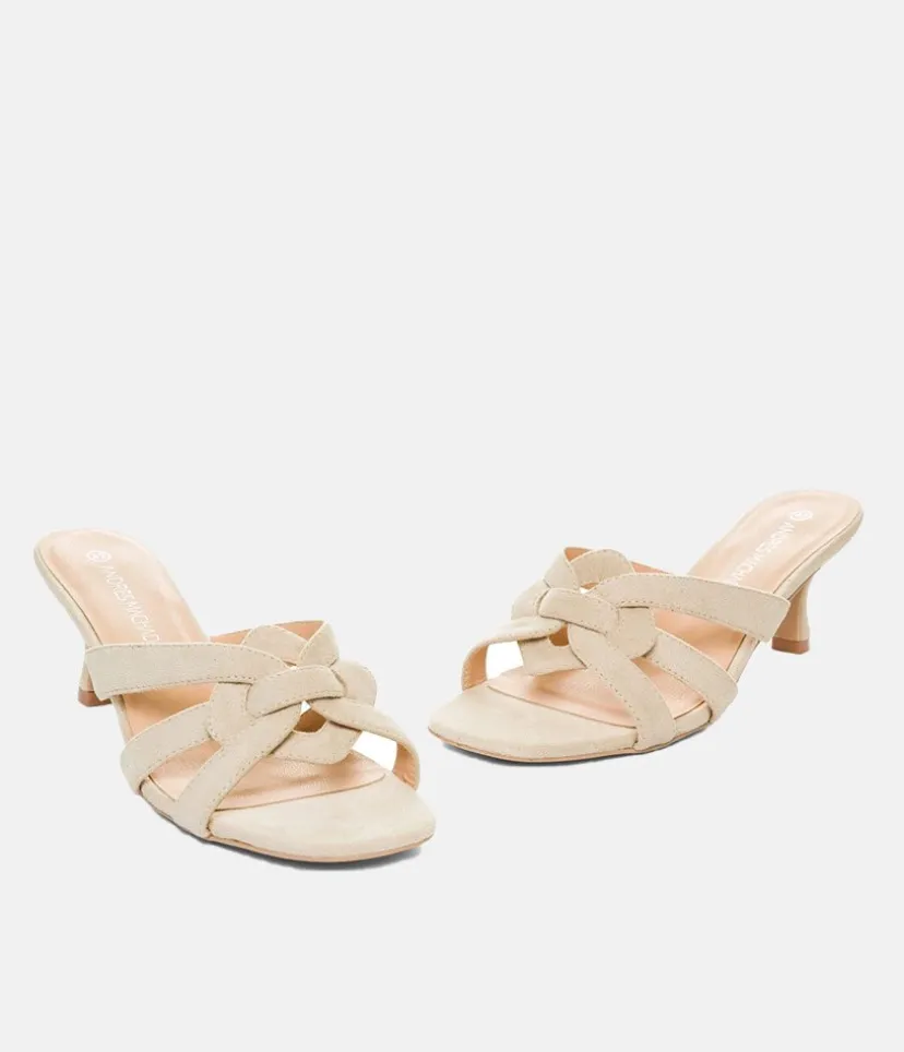If you love a simple, streamlined look for shoes, you need to check out these heeled mule sandals. Featuring Intertwined straps over the vamp.