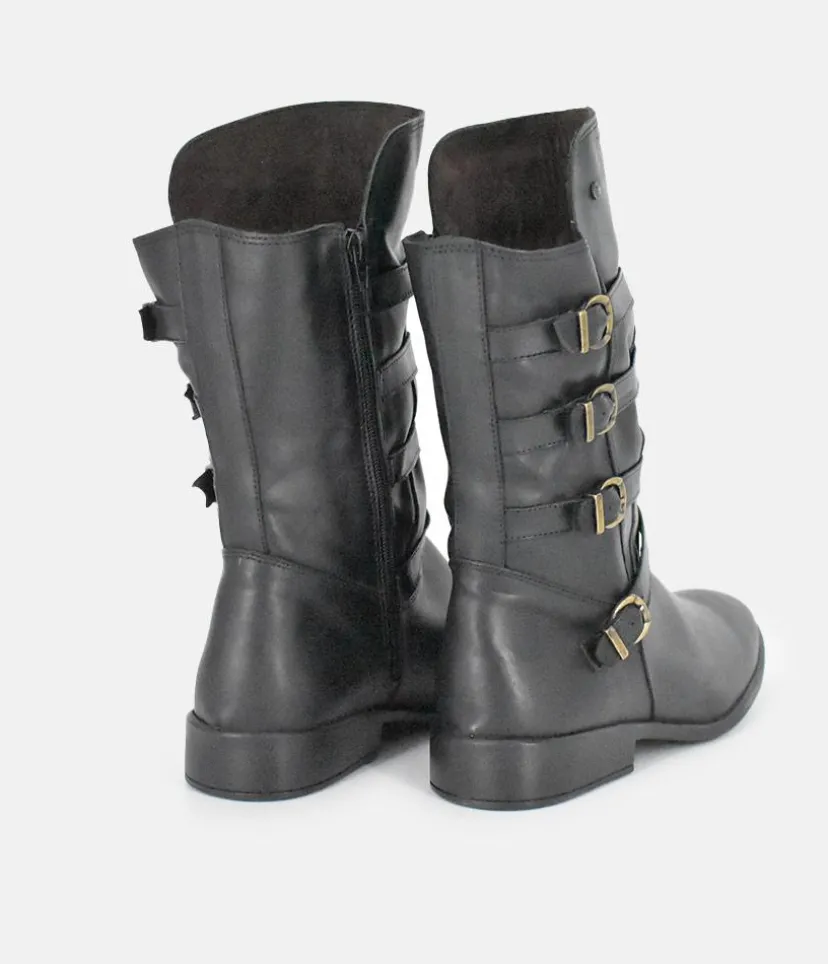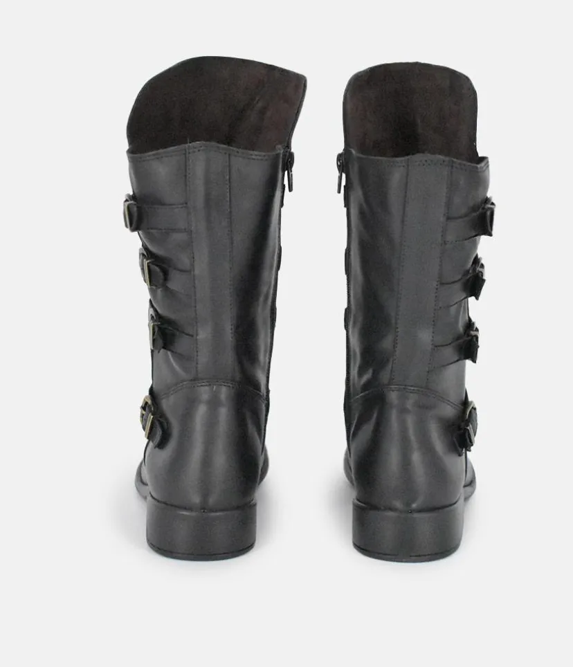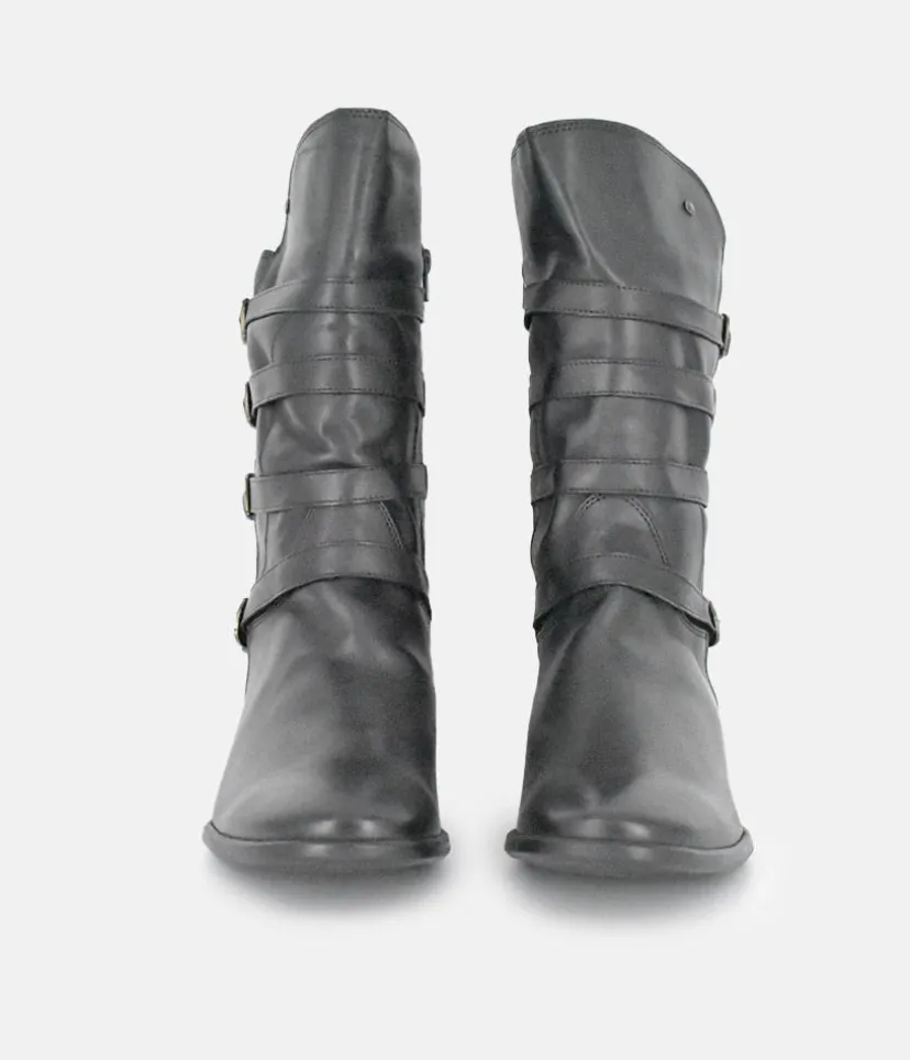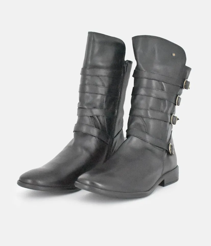 A Premium Leather Midi Boot with decorative buckle detailing on the upper. This styles fuses function with style and is perfect for the cooler days.