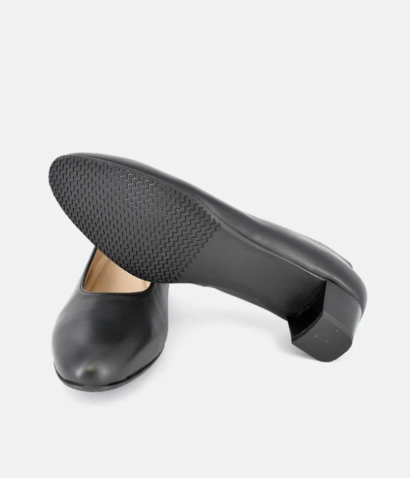 These Block heel shoes are a versatile addition to Your year-round wardrobe. Featuring a simple and classy silhouette in classic black. These heels have superb cushioining on the insole and will be a great choice for the office or ideal if your on your feet all day.