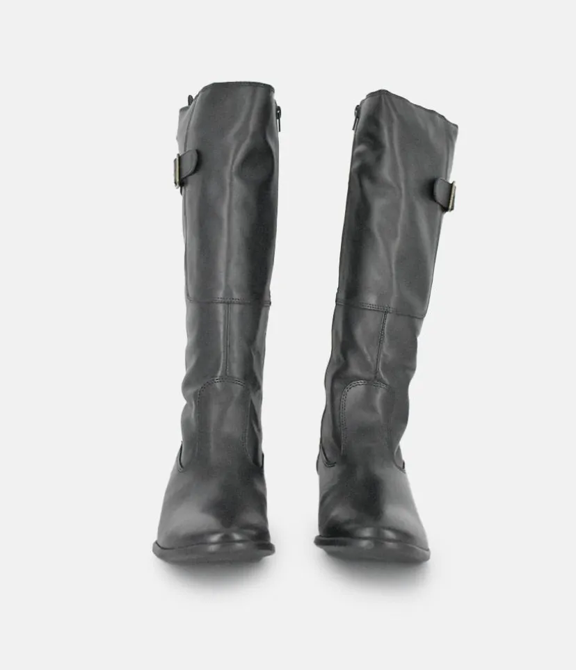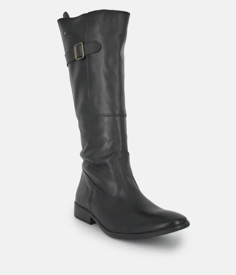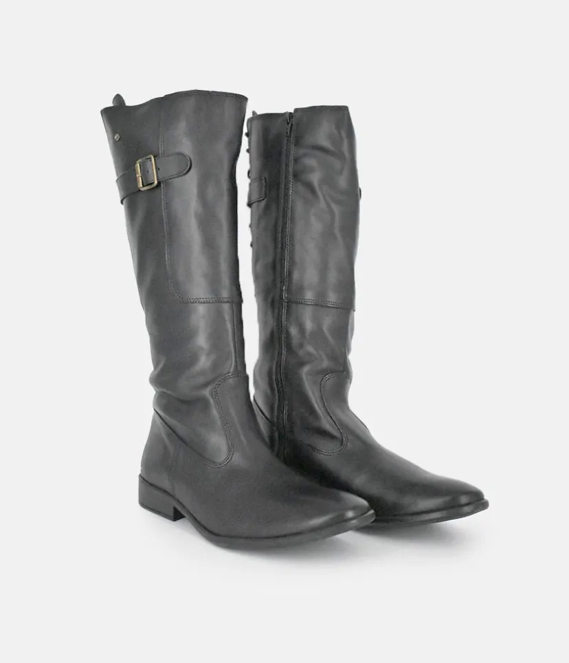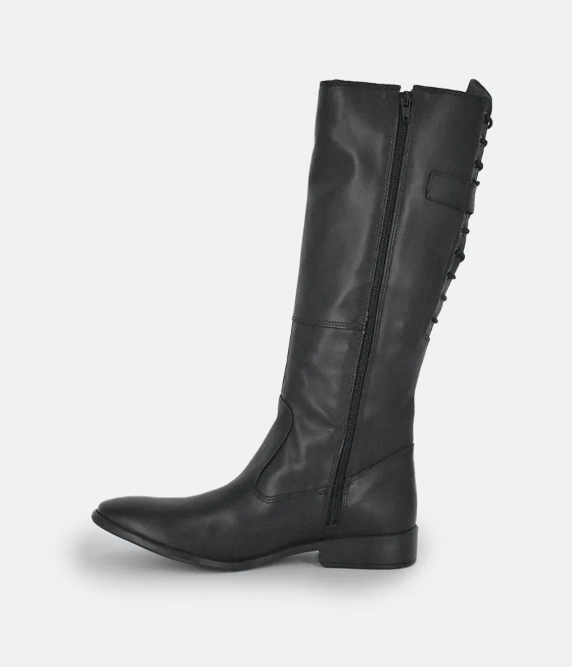 Give any look that extra something special with these long leather boots featuring decorative corset style lacing and buckle detail. A great choice for your wardrobe this season.