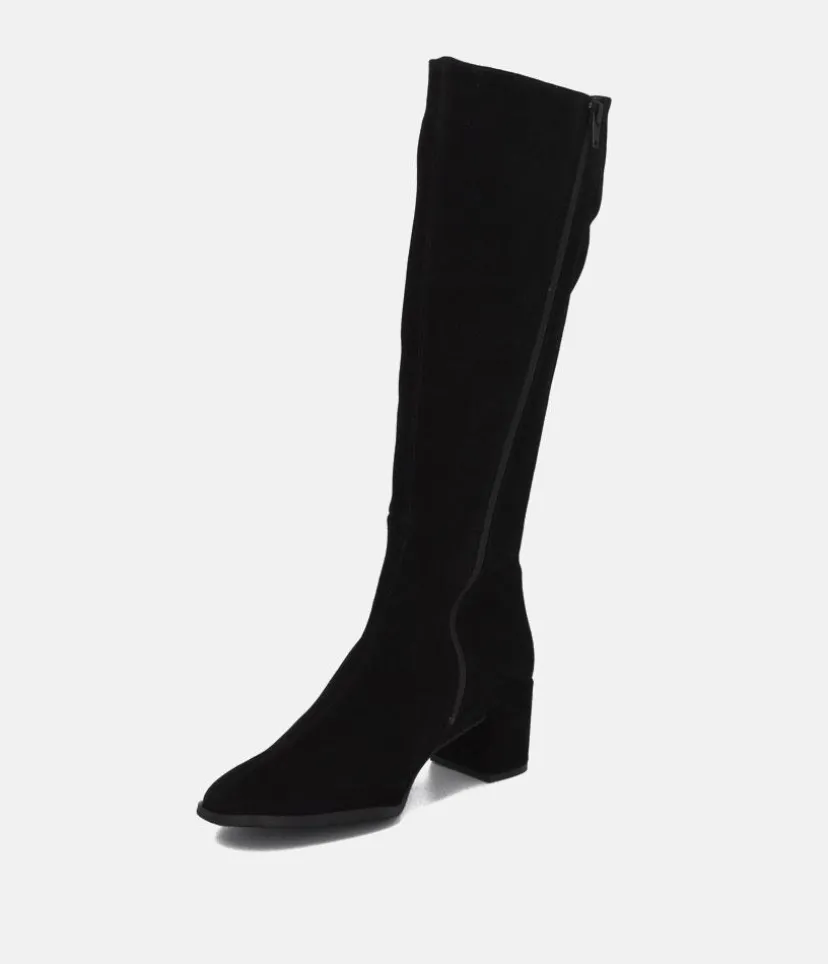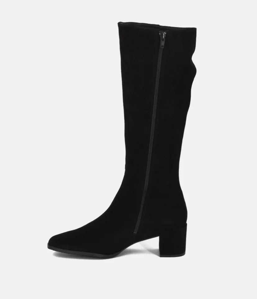 These Stylish long boots from Cinderella Shoes are crafted by hand in a Beautiful Black Suede are perfect for cooler days. An ideal choice for weekend relaxation, adding a touch of luxury to your wardrobe and a great versatile style.