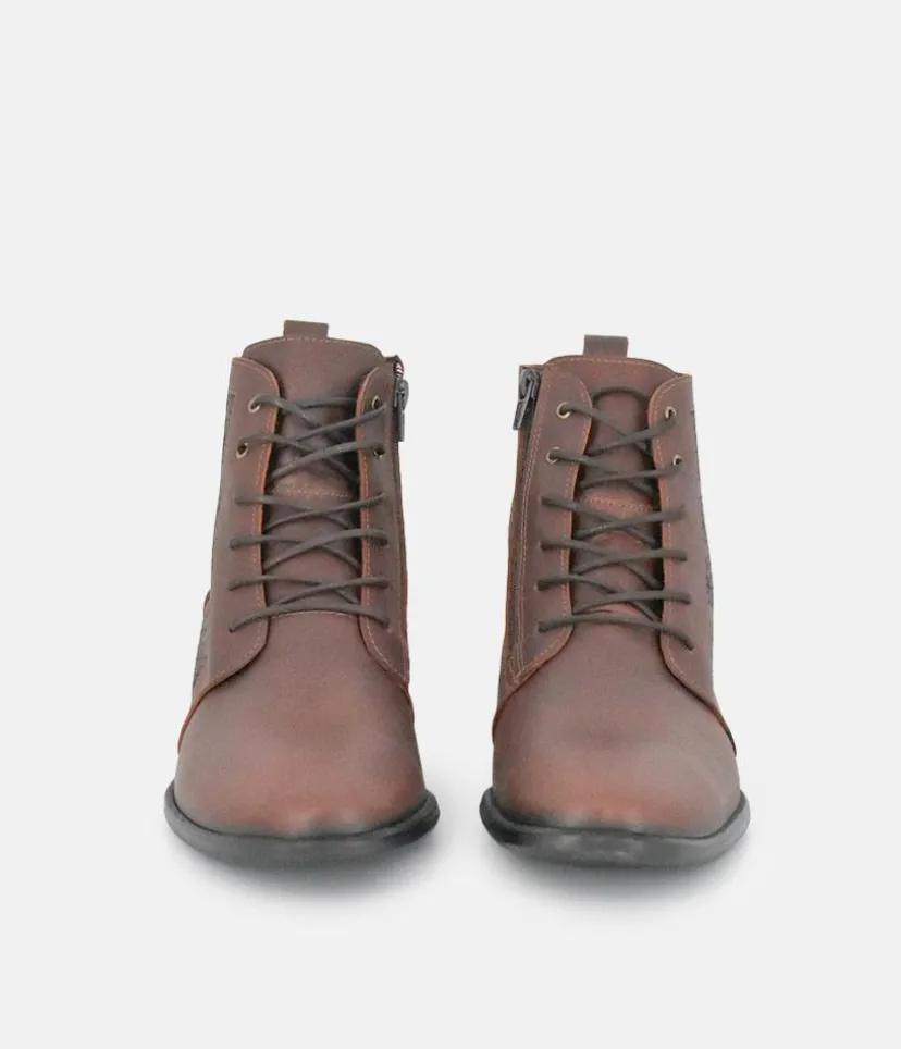 A stylish yet practical Ankle Boot from Cinderella Shoes, featuring a pretty floral pattern on the upper. Fastened with laces and a handy side zip for quick and easy on and off.