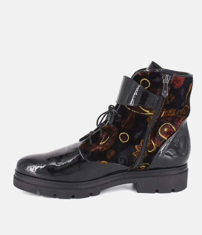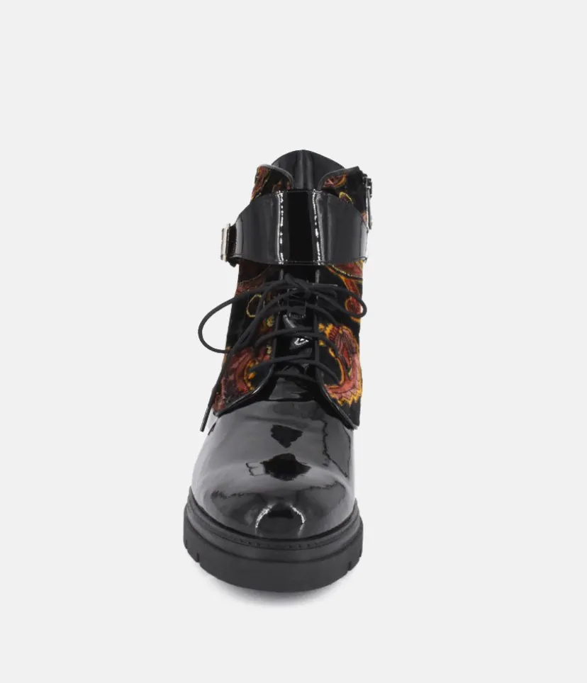 Fall for these magnificent ankle boots with it’s striking suede and patent leather from the Dansi brand. These velvet suede boots will add more than a touch of luxury to your shoe collection. These ankle boots are crafted from soft neutral suede and feature a low block heel for ultimate comfort. A perfect pair for creating a chic and fashionable look.
