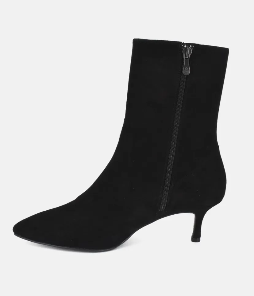 Make room in your wardrobe for these wear-with-anything boots! Designed with a chic pointed toe and a midi stiletto heel, these stylish suede ankle boots have a side zip fastening for ultimate ease of wear.