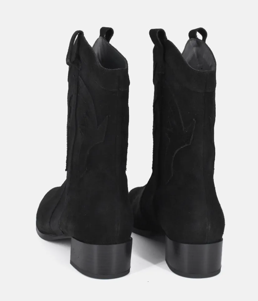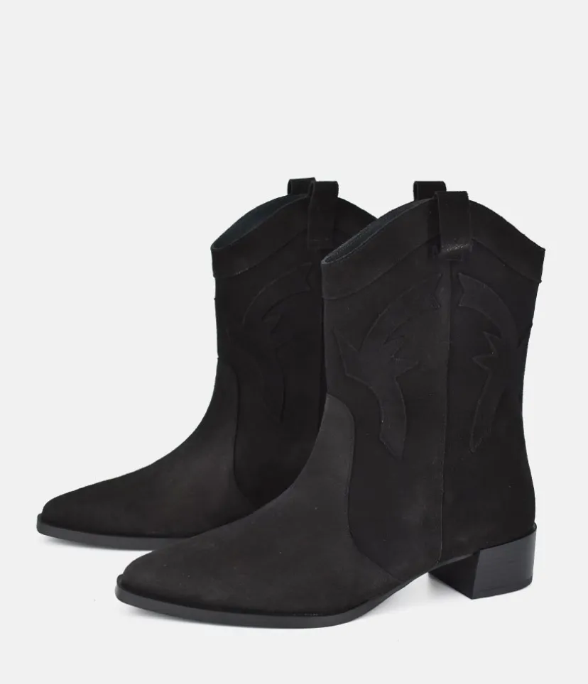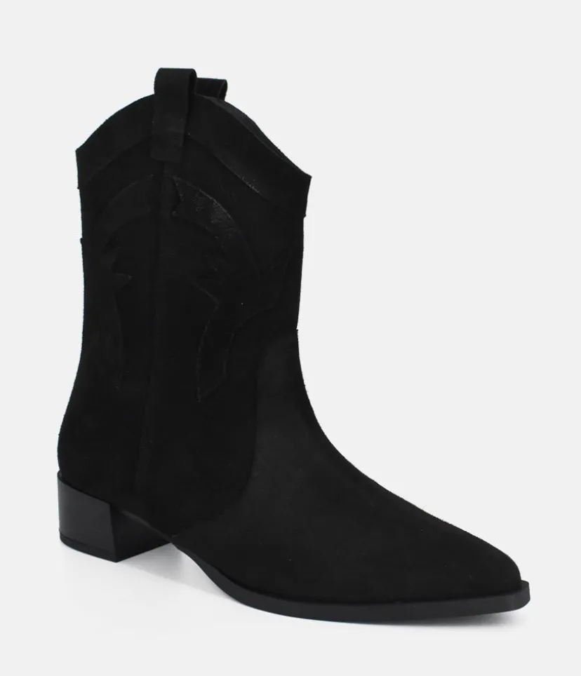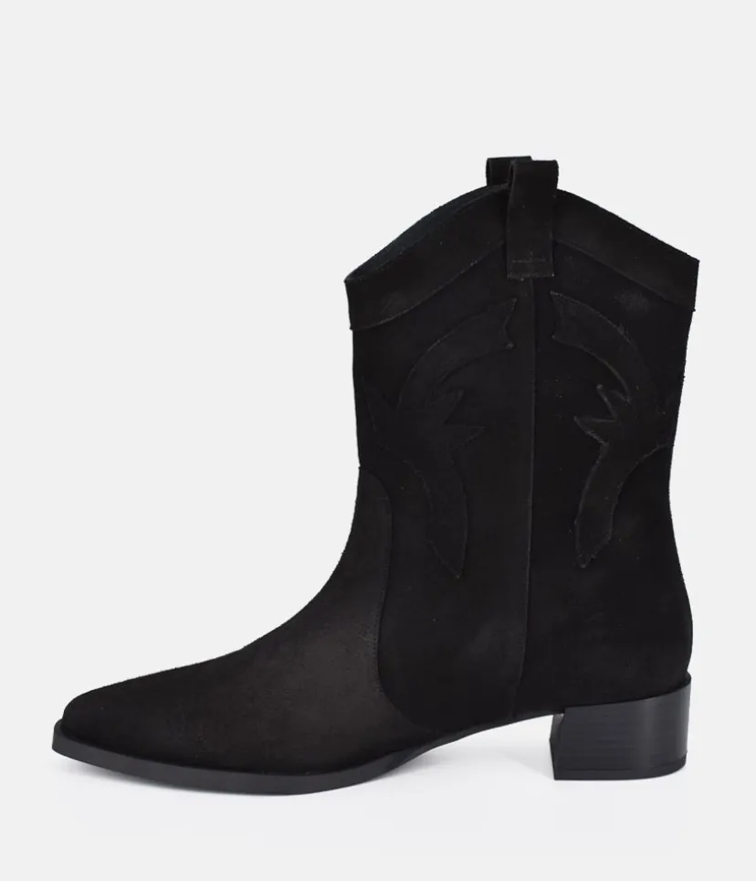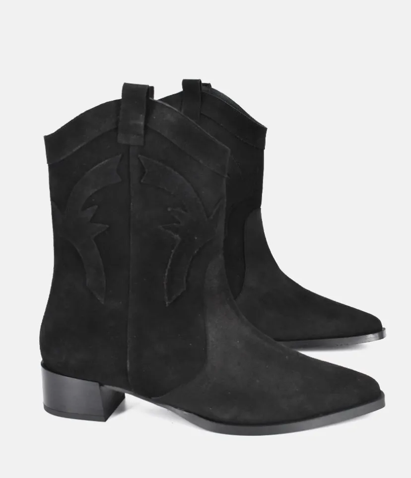 Treat your wardrobe to these essential ankle boots. A perfect choice for this season for a versatile and will look good with anything, whether you’re wearing them with jeans or a dress. Crafted from soft suede, these boots are designed with a classic almond toe and rest on a stacked heel and feature cut out Western-style panelling.