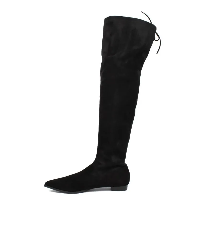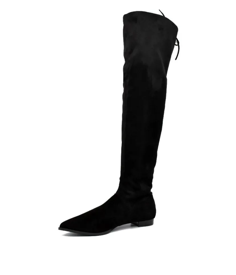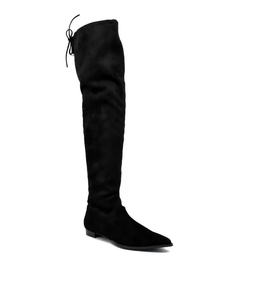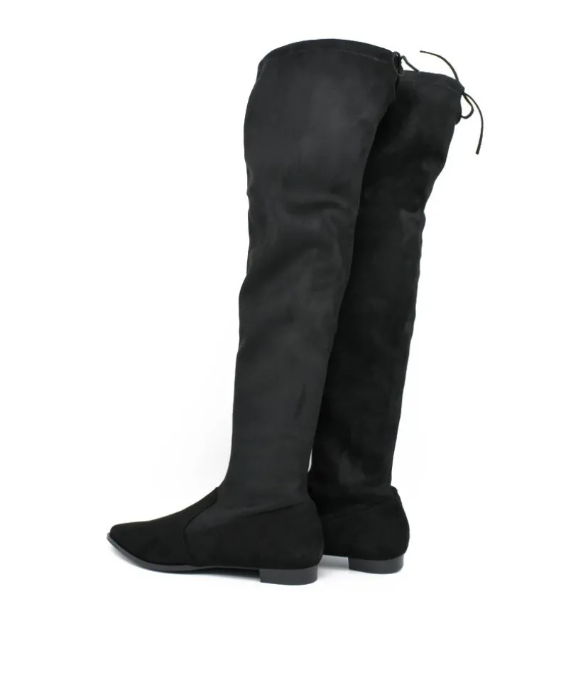 Create a striking silhouette in these Premium Suede over-the-knee boots. Pull-on style, with a soft pointed toe, and tie closure at back. These boots are handmade for Cinderella Shoes in Spain. Warm and chic, these make for a wardrobe staple.