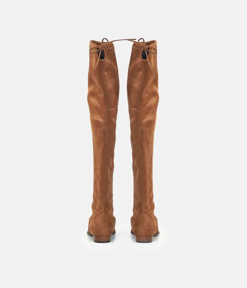 Create a striking silhouette in these Premium Suede over-the-knee boots. Pull-on style, with a soft pointed toe, and tie closure at back. These boots are handmade for Cinderella Shoes in Spain. Warm and chic, these make for a wardrobe staple.