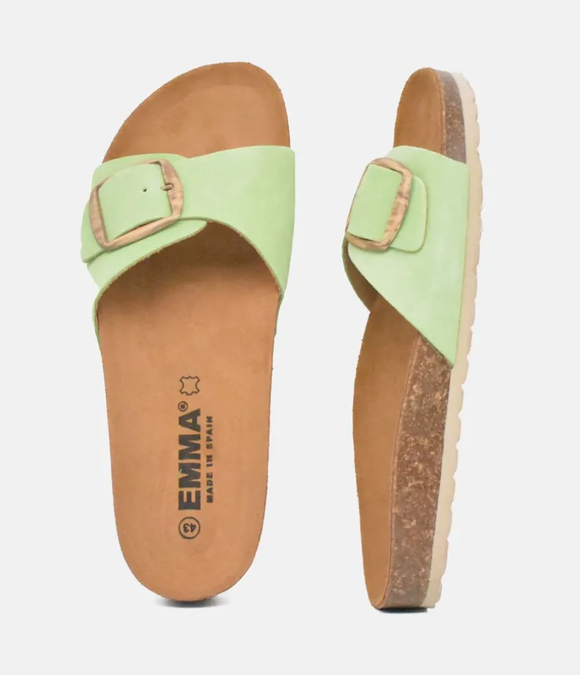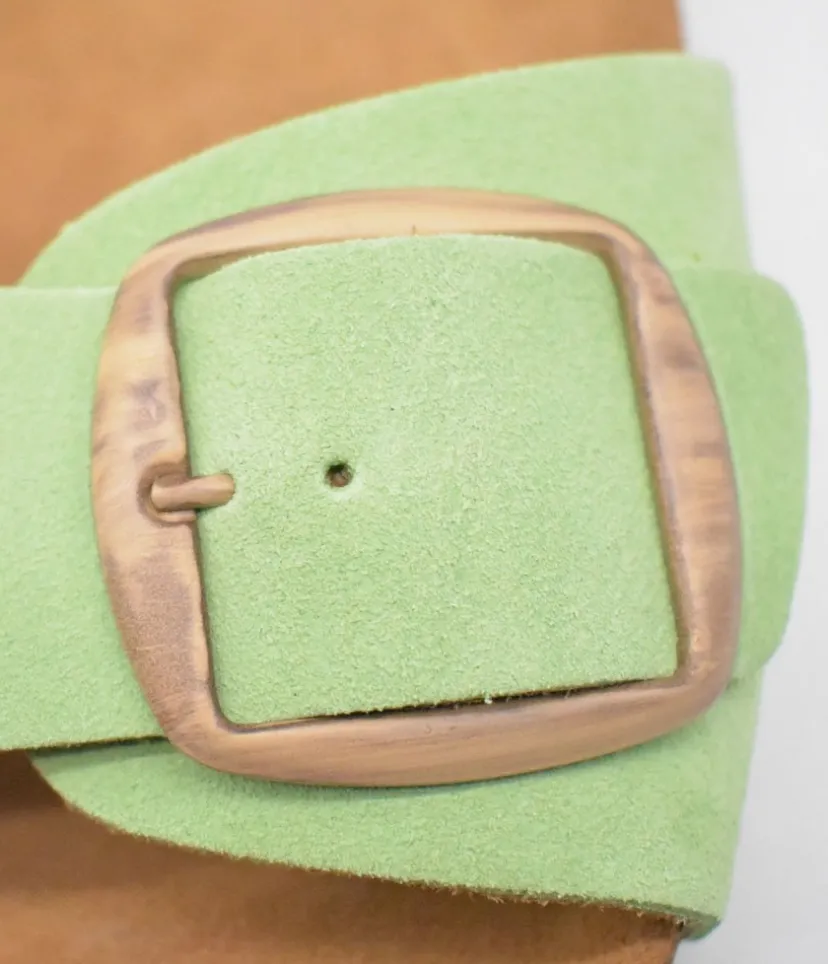 A Modern sandal with a strap, buckle and a contoured cork footbed combine to create a simple everyday chic look. This versatile slide will add a pop of colour to your wardrobe this season.