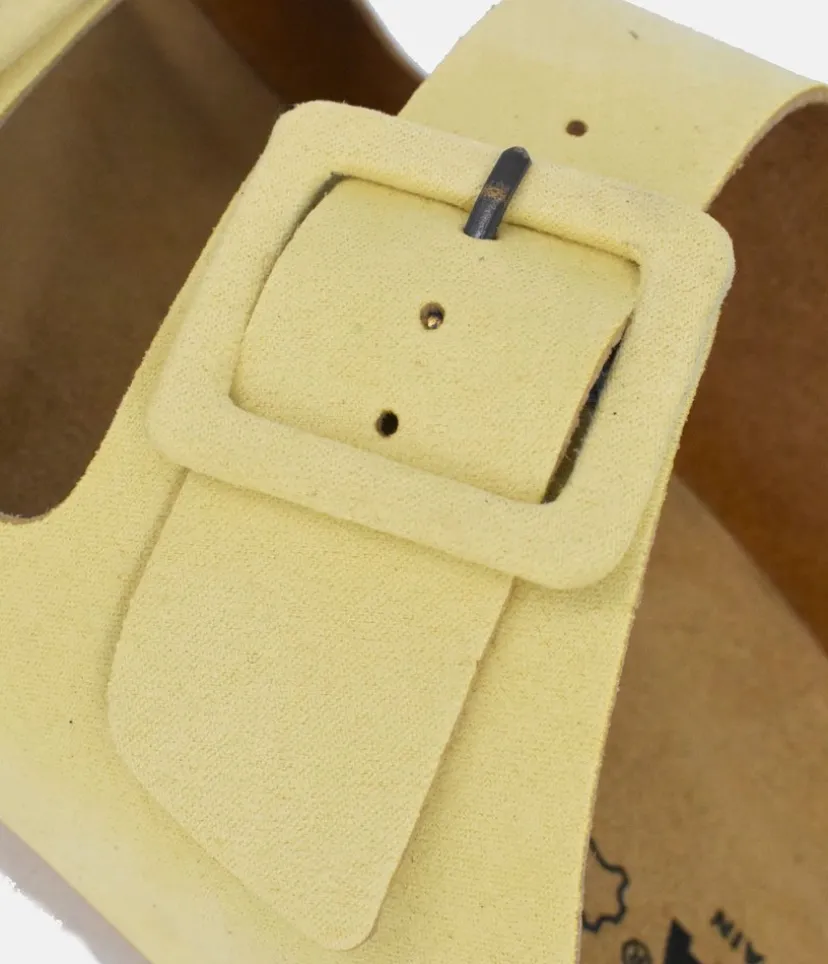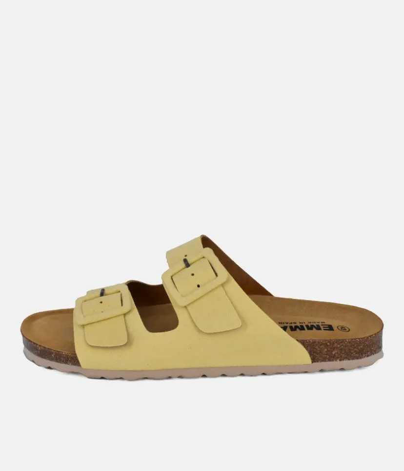 This Pretty Sandal with double straps on the upper is finished in a beautiful pale pastel yellow leather. The contoured cork footbed ensures a very comfortable fit. A great style perfect for holidays!