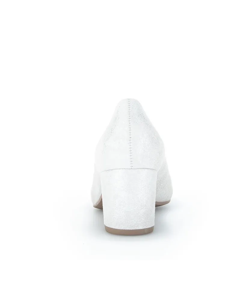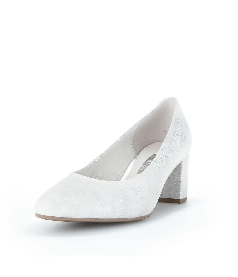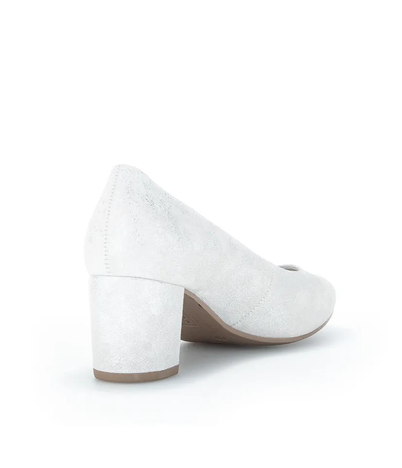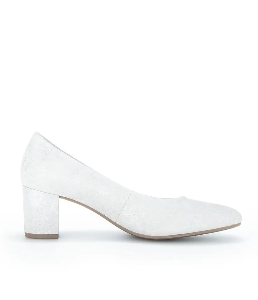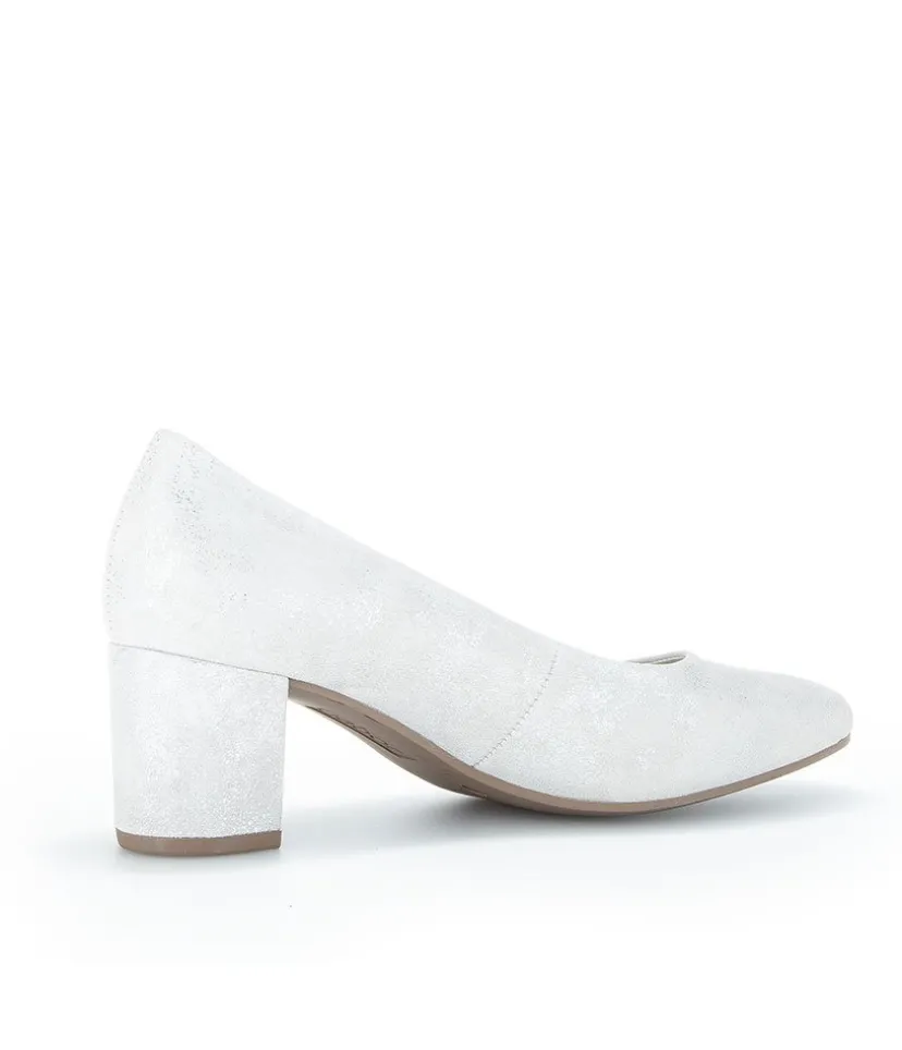 A Classic Block Heel style from Gabor – Crafted in a Beautiful Silver/Light Grey Metallic Leather with leather lining and mid height heel. Perfect for any Special Occasion!