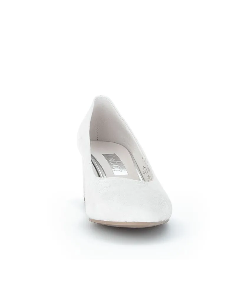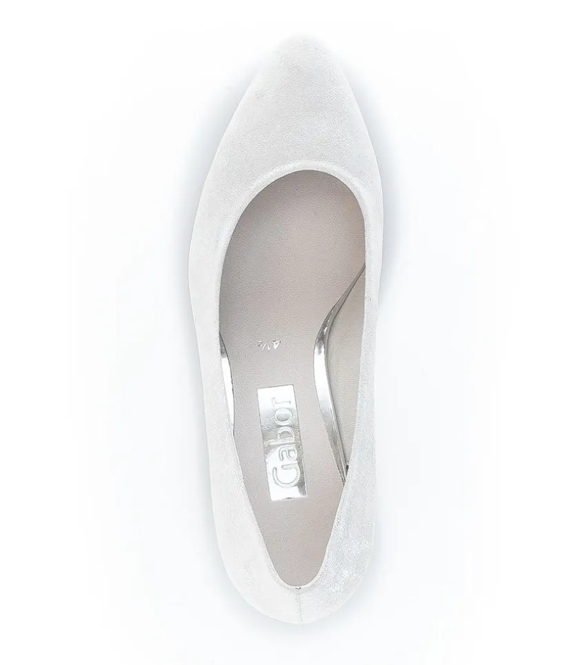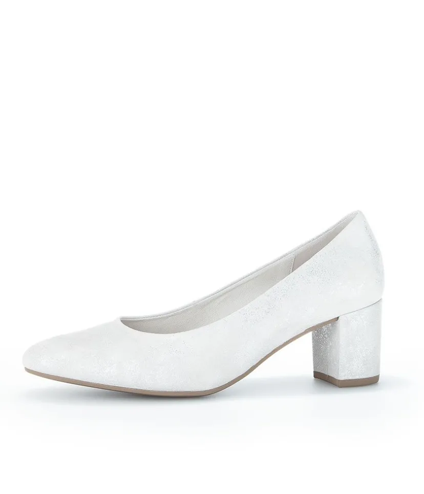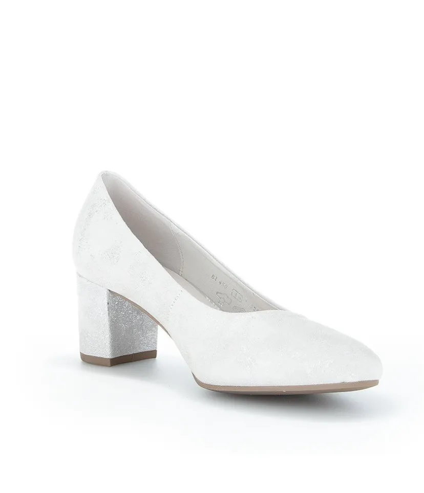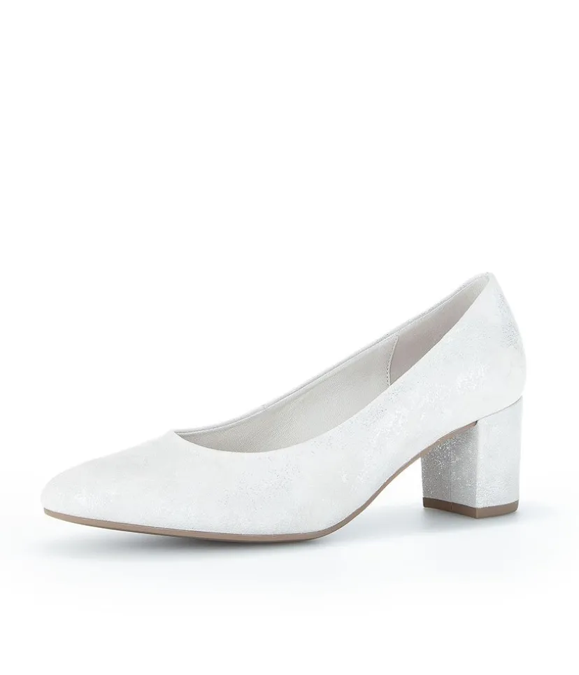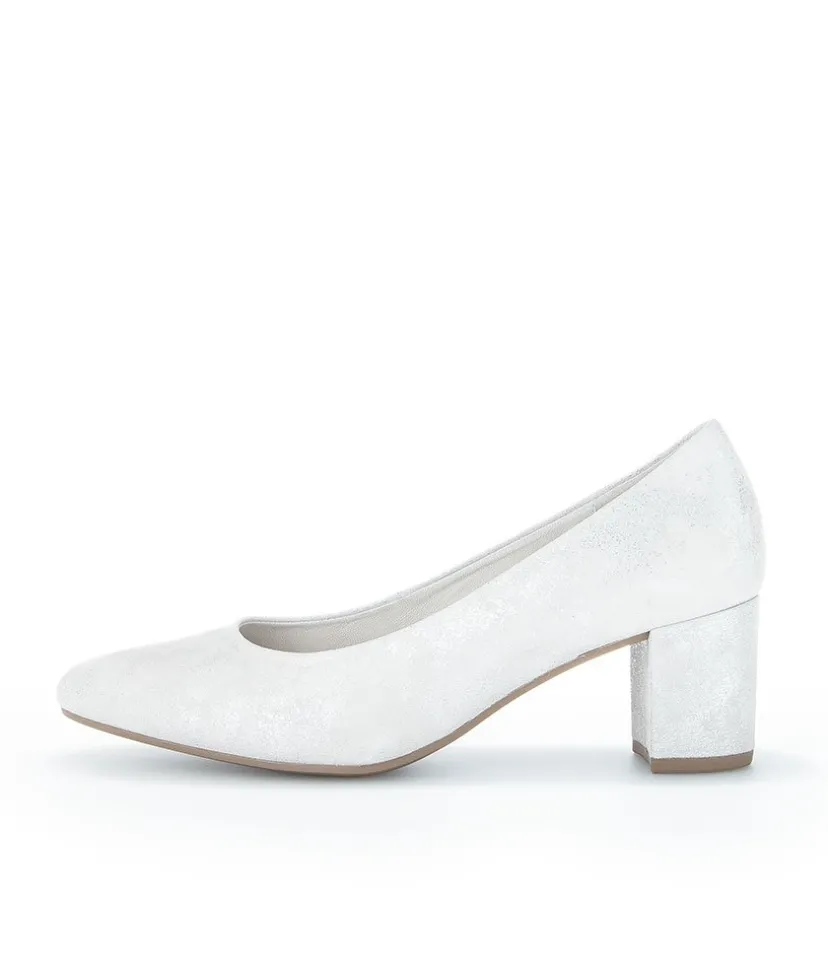 A Classic Block Heel style from Gabor – Crafted in a Beautiful Silver/Light Grey Metallic Leather with leather lining and mid height heel. Perfect for any Special Occasion!