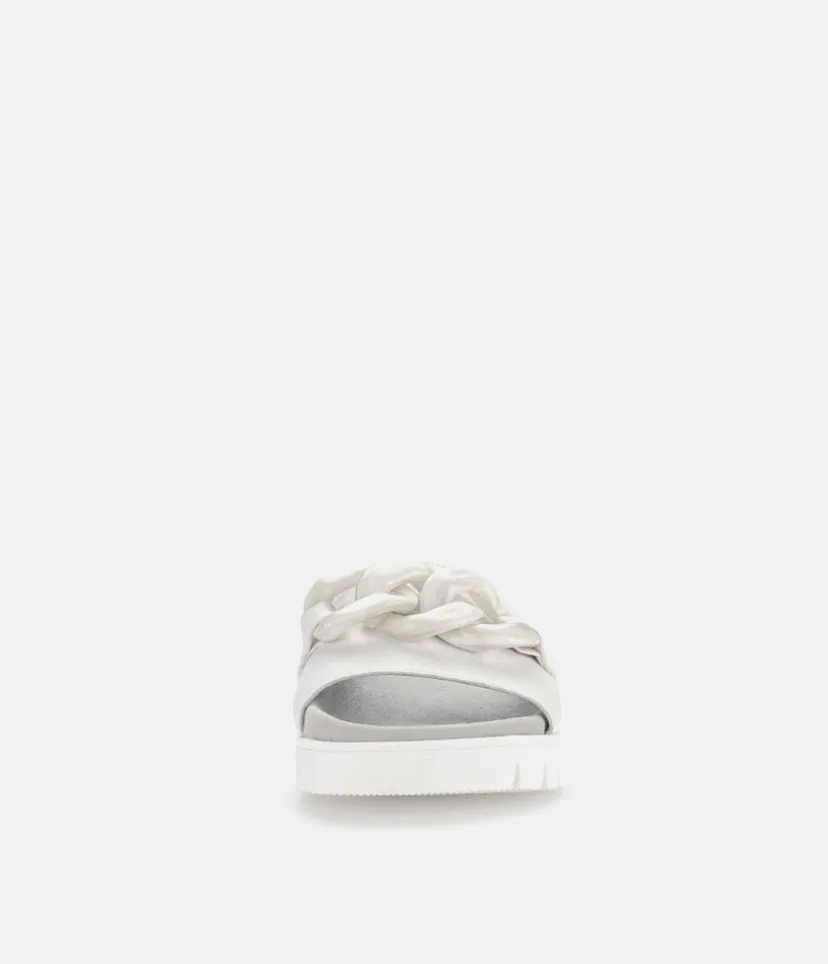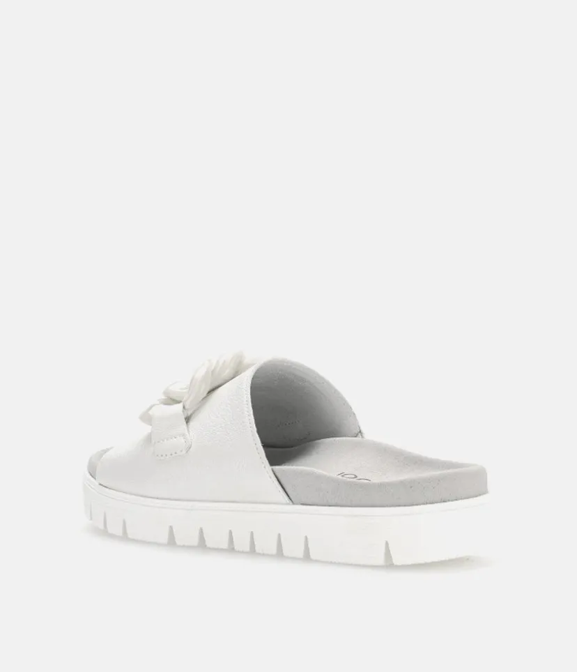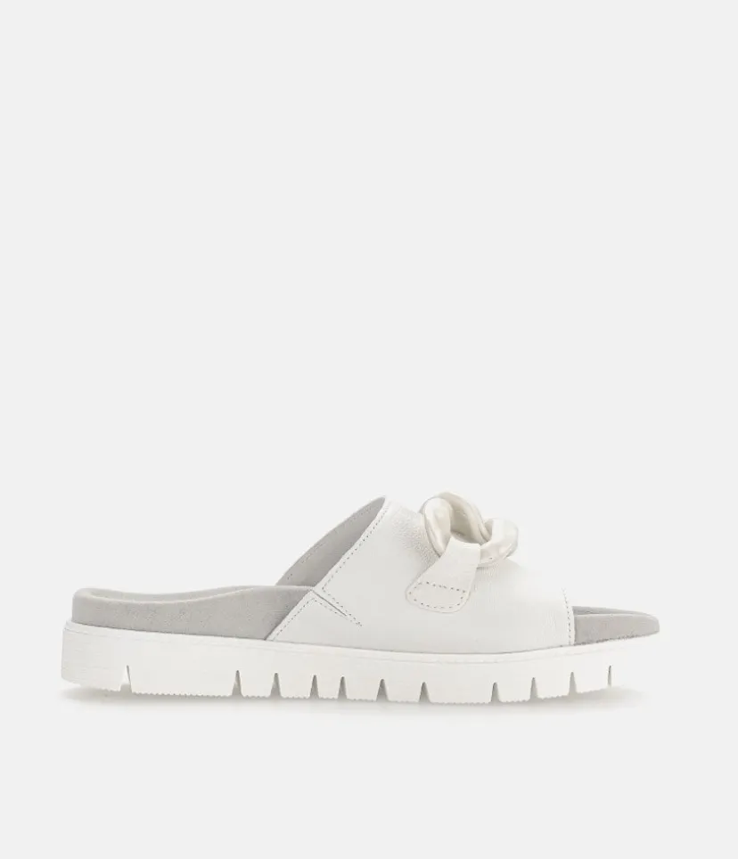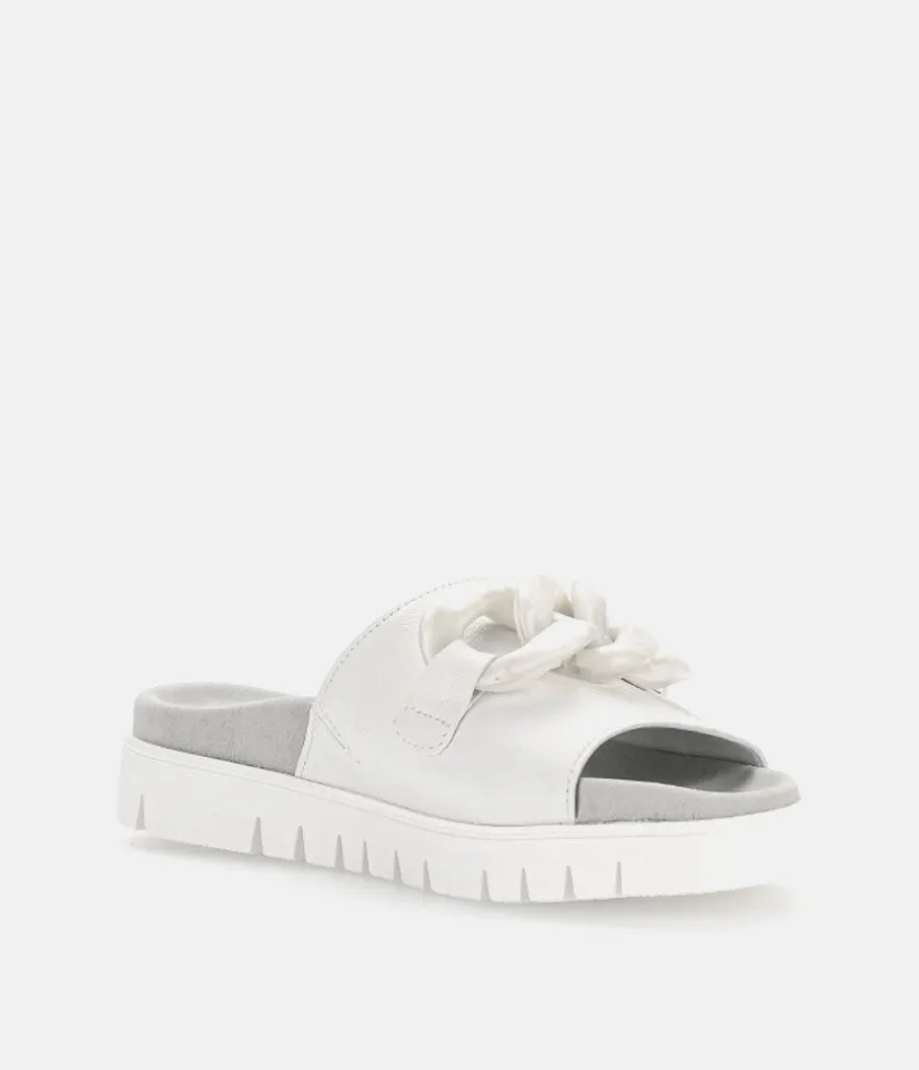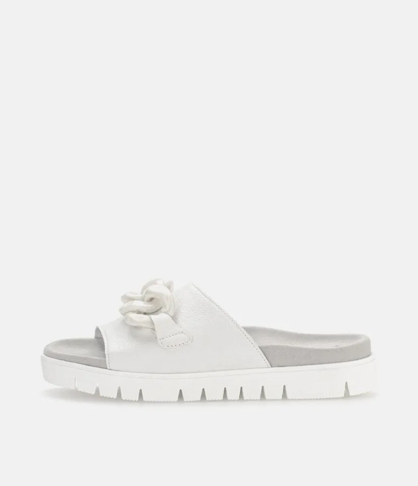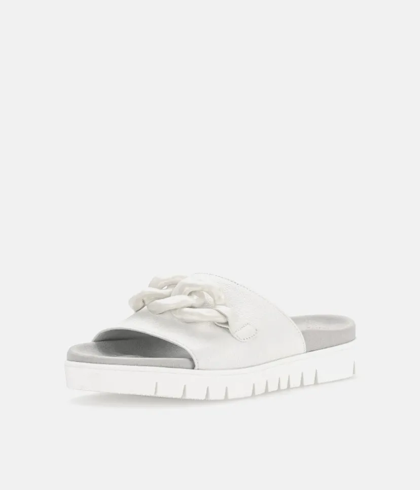 Fashionable, comfortable and on-trend, these Mules from Gabor are a real eye-catcher. Crafted from premium Leather and a chunky chain embellishment, . They feature a wide leather strap across the foot for style and support, with Gabor’s Best Fitting technology, you can be assured a comfortable fit. The chunky light sole rounds off the shoe’s look of edgy sophistication.