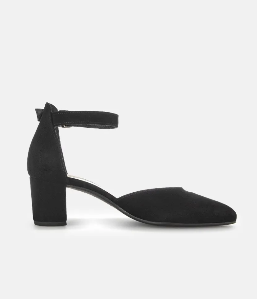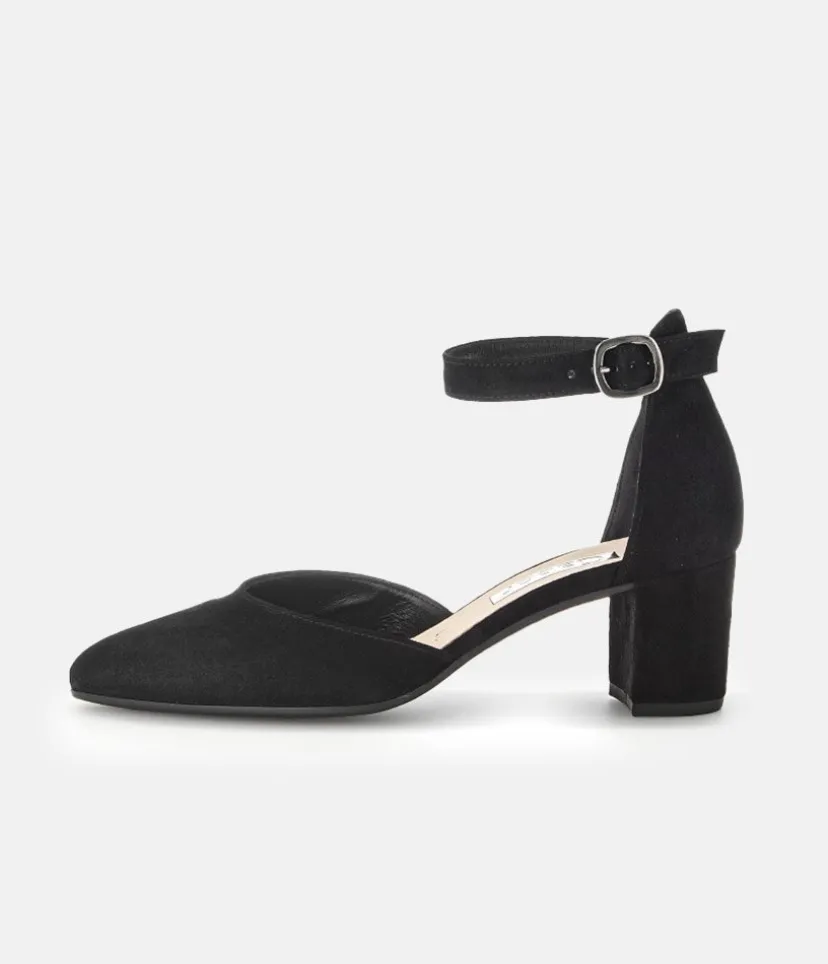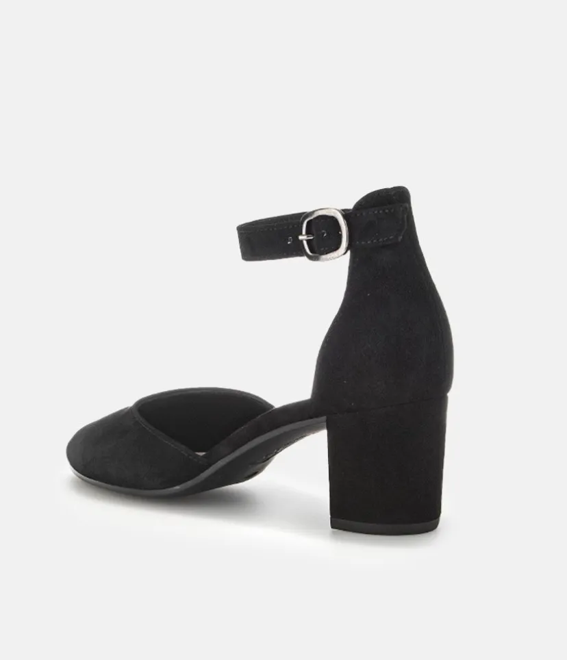 This style from Gabor is perfect for special occasions with it’s block heel and Plush Black Upper. The covered heel back and adjustable ankle strap and buckle ensure a secure fit.