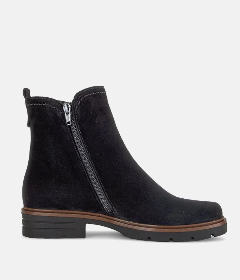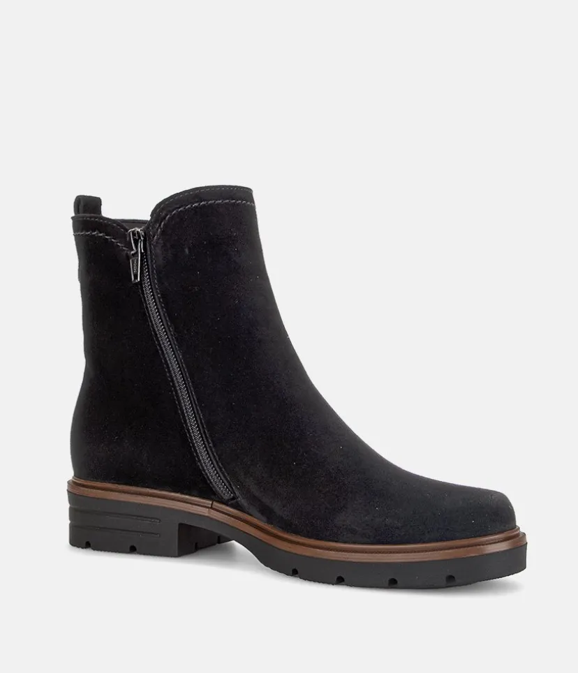 This style from Gabor is made from a high-quality Suede. Contrasting stitching, brown trim on the outsole and featuring side zip for easy on and off. A must-have for any season!