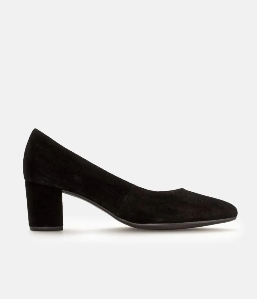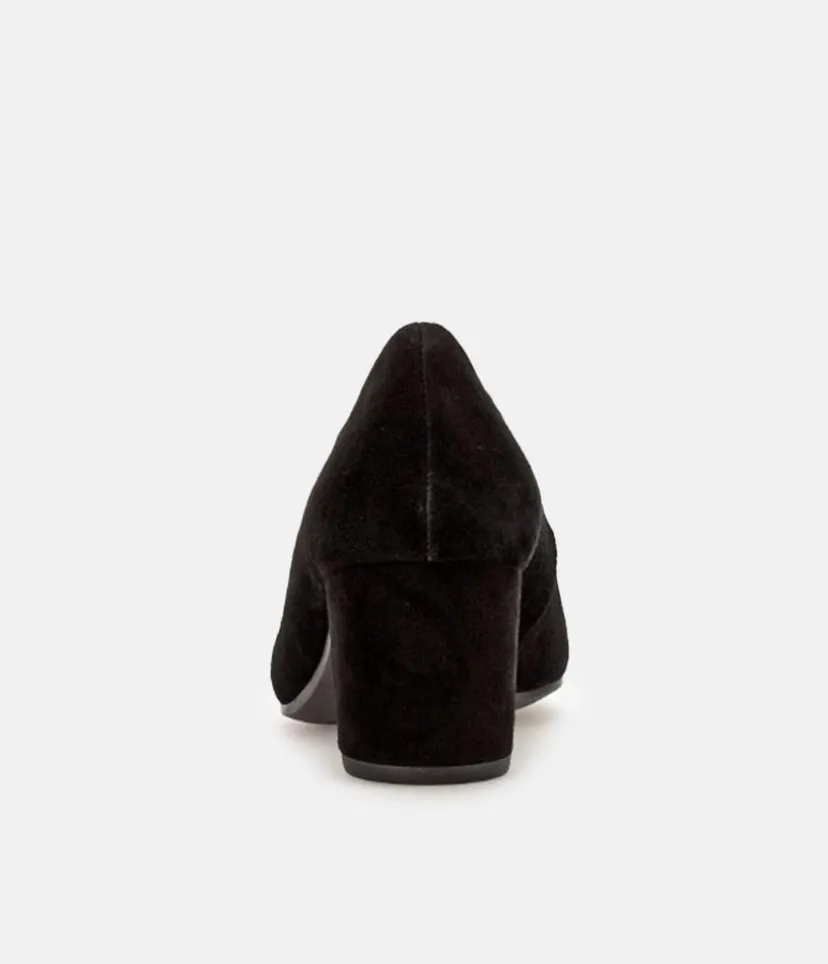 A Classic Block Heel style from Gabor – Crafted in a plush Black Suede with leather lining and mid height heel.