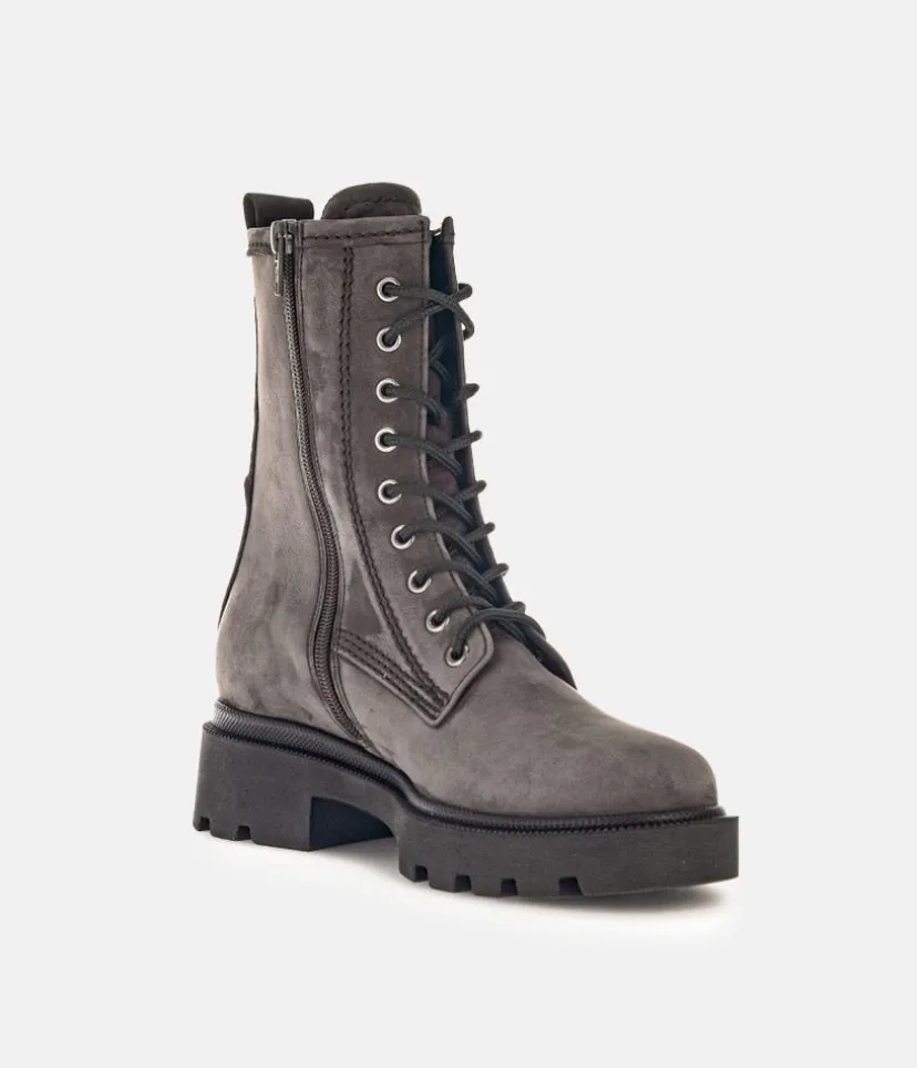 The Style from Gabor in Grey is a wardrobe Must Have this season. The upper consists of high quality soft Grey Nubuck and the full-length zip on the inner allows for easy on off while the laces allow for an adjustable fit. Part of Gabor’s Best Fit range this boot offers a wider stepping surface in the ball area of your foot for your comfort as you walk. A removable insole makes these boots ideal for those who require custom insoles.