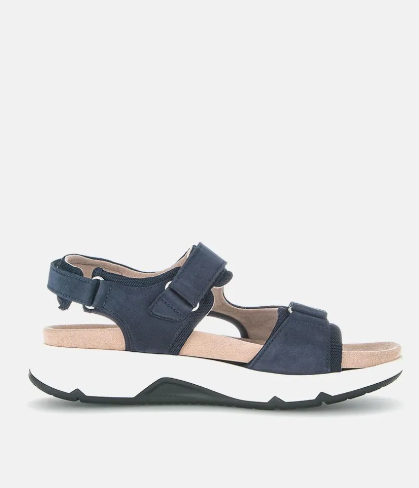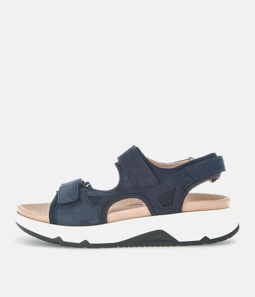 A Fabulous, sporty, comfort fit walking sandals incorporating both Gabor’s ‘Rolling Soft’ and ‘Opti Fit’ technologies,. Featuring three adjustable velcro closing straps with secure fit, padded insole, leather lining and 1.5 cm wedge sole. A gorgeous summer walking sandal that will be a treat for your feet.