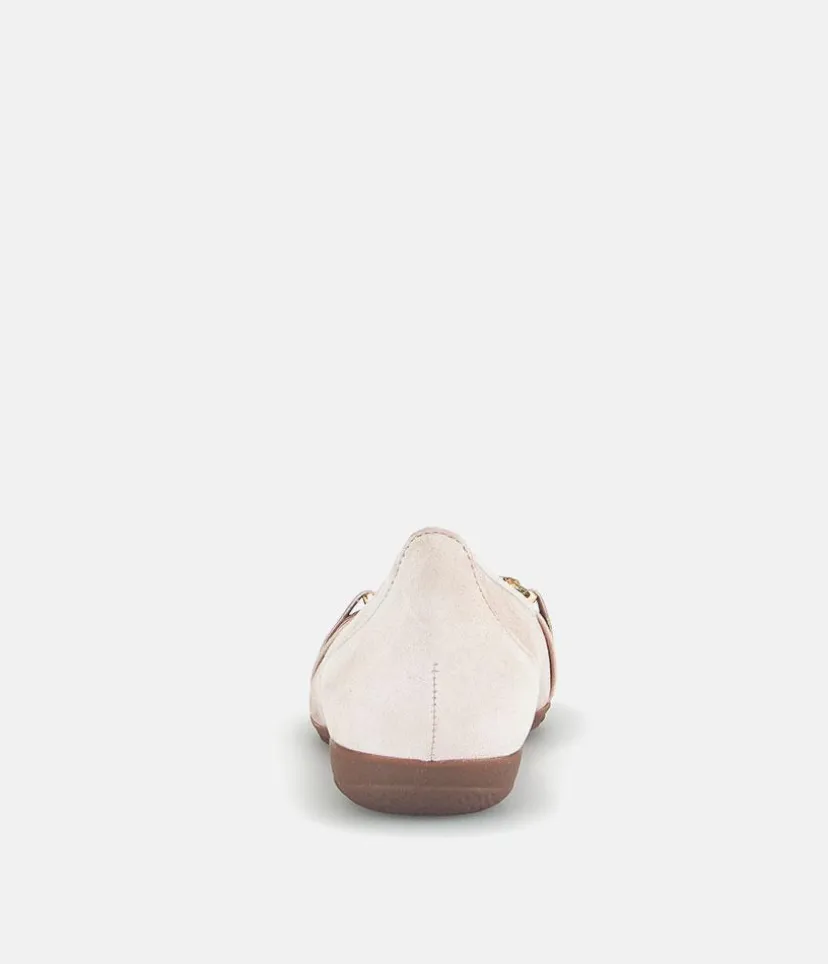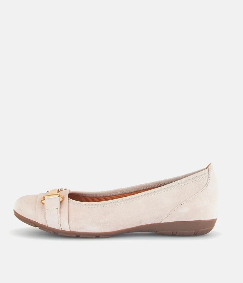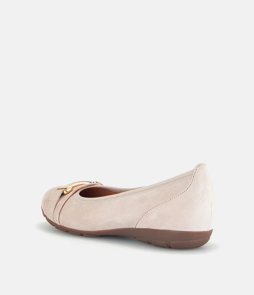 A Super new style from Gabor in a beautiful soft Suede and finished to perfection with a Gold buckle on the upper. Ballerinas are known for their mix of elegance and a comfortable flat sole. There is a simple reason why they are so popular: slip on, feel good and always be styled appropriately is the motto.