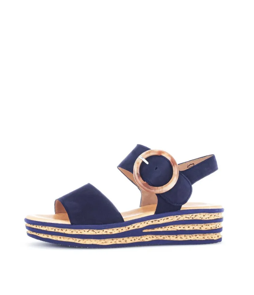 This sandal from Gabor is a beautiful combination of style and comfort that can be worn for a wide variety of occasions. These comfortable wedge sandals have a patterned wedge sole, a velcro strap for easy on and off and a 6.5 cm wedge heel.
