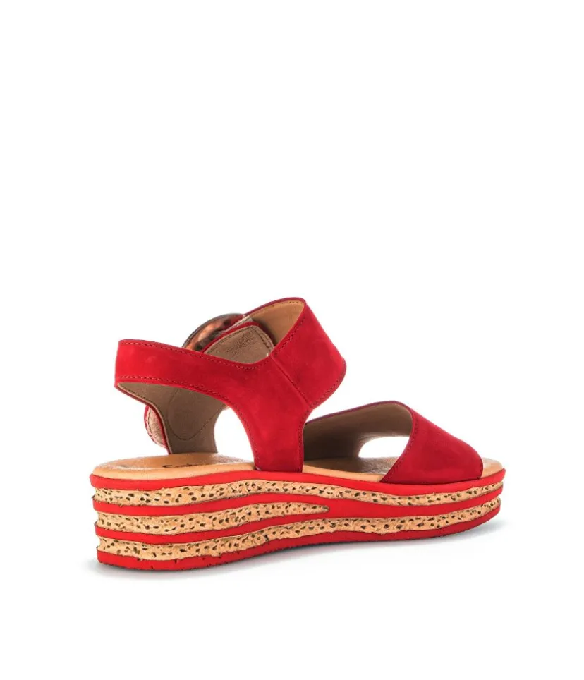 This sandal from Gabor is a beautiful combination of style and comfort that can be worn for a wide variety of occasions. These comfortable wedge sandals have a patterned wedge sole, a velcro strap for easy on and off and a 6.5 cm wedge heel.