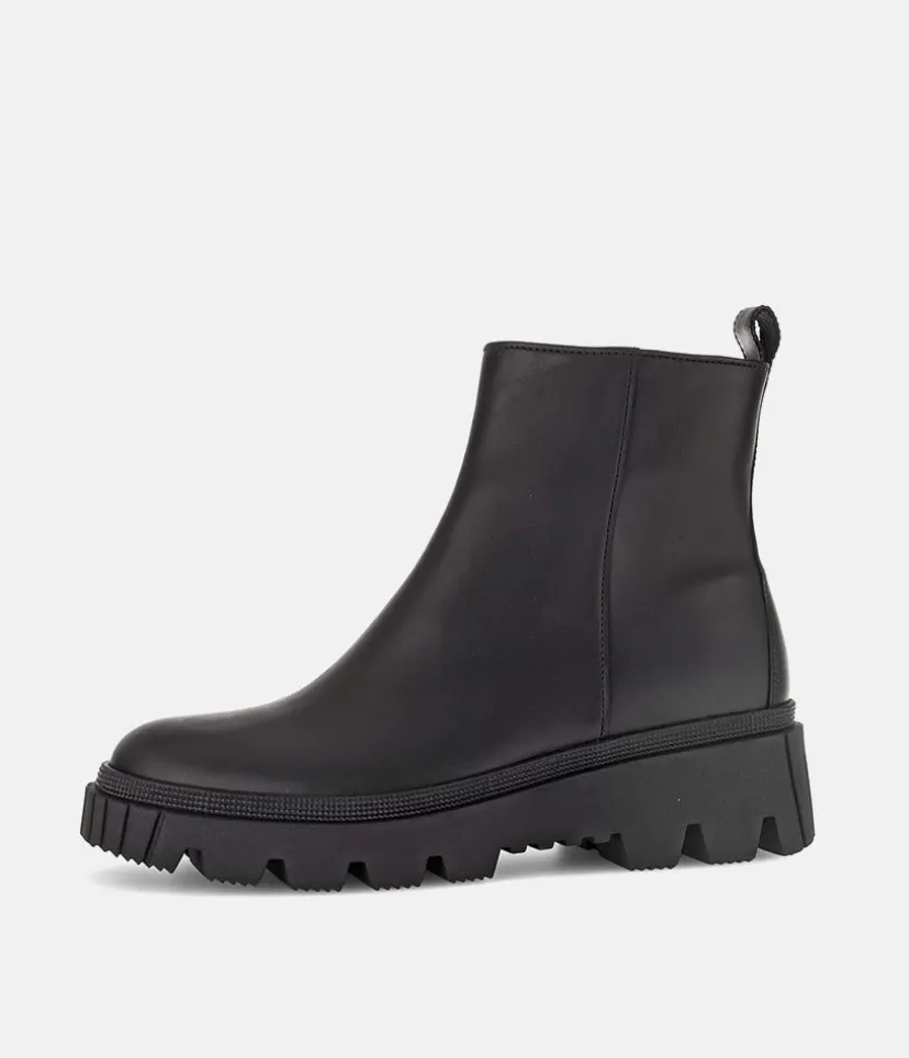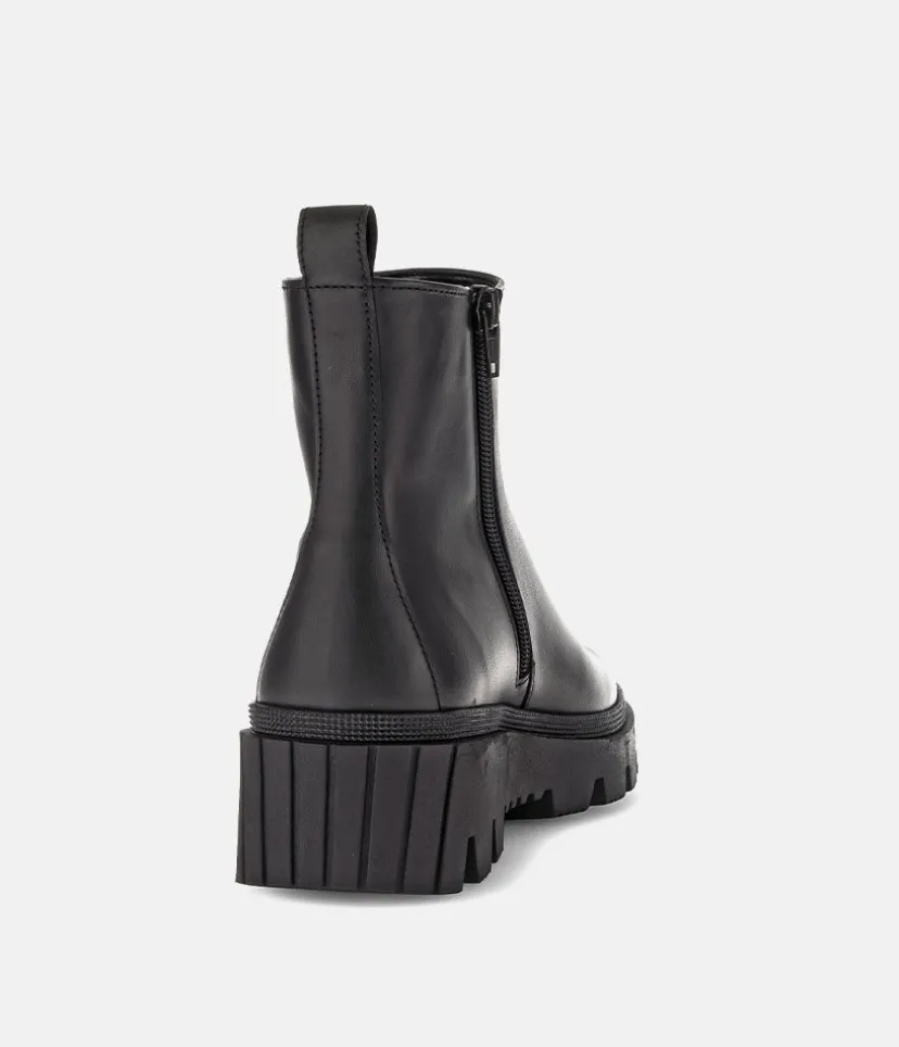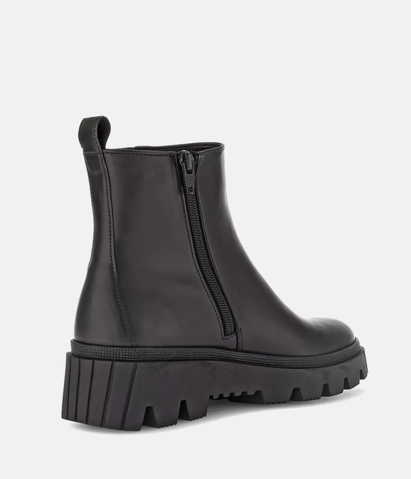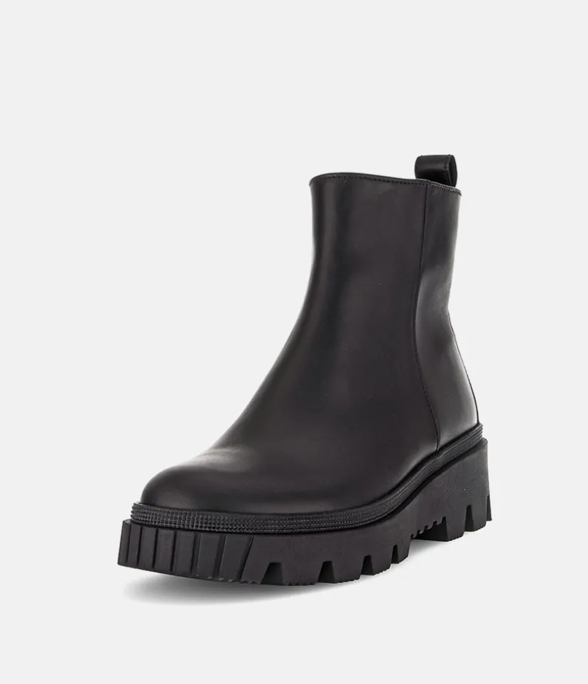 This is a contemporary ankle boot from Gabor with a soft Leather upper and chunky profiled outsole. The durable man-made outsole ensures maximum traction and the the side zip ensures easy on and off.