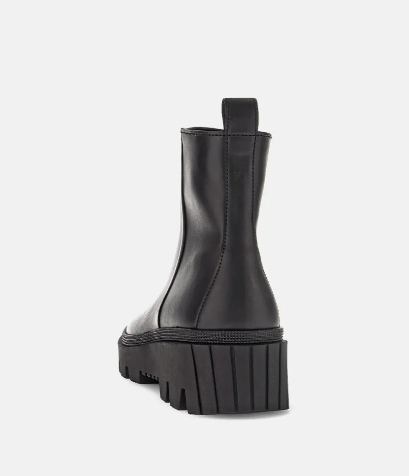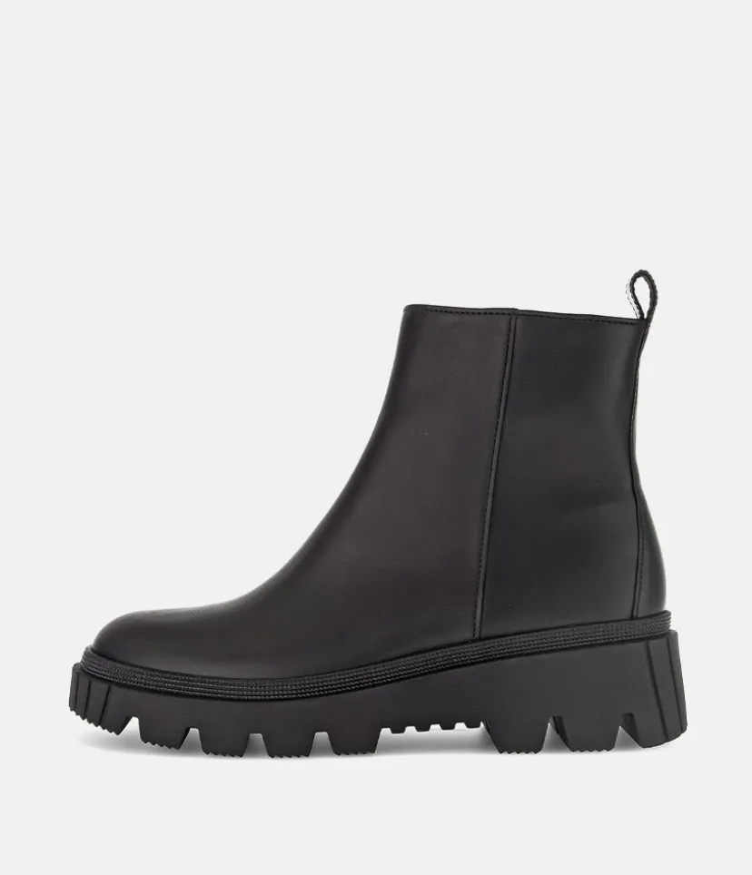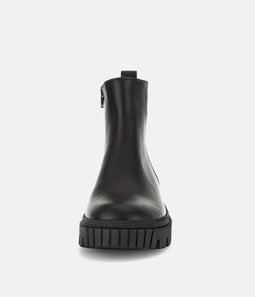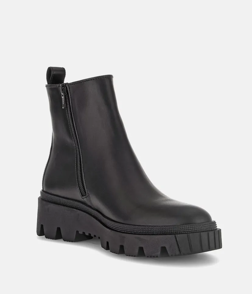 This is a contemporary ankle boot from Gabor with a soft Leather upper and chunky profiled outsole. The durable man-made outsole ensures maximum traction and the the side zip ensures easy on and off.