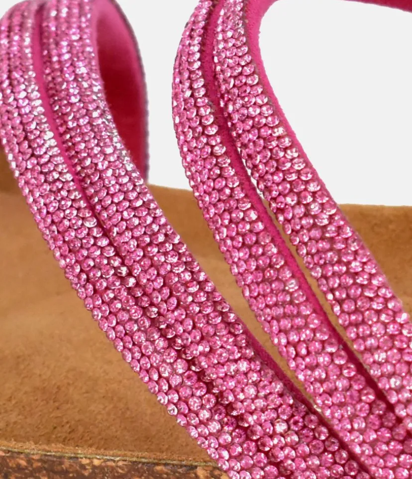 A Stunning strappy sandal, contoured cork footbed and a contrasting outsole combine to create a dressy looking sandal. This sandal will be a favourite in your wardrobe this season and is ideal for vacations to take you from day to night.