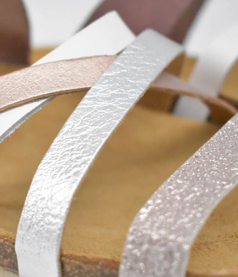 This Super Stylish sandal stands out with it’s Mix of Colour and types of Leather used to give them a totally unique finish. The contoured cork footbed ensures a very comfortable fit. A great style perfect for holidays!