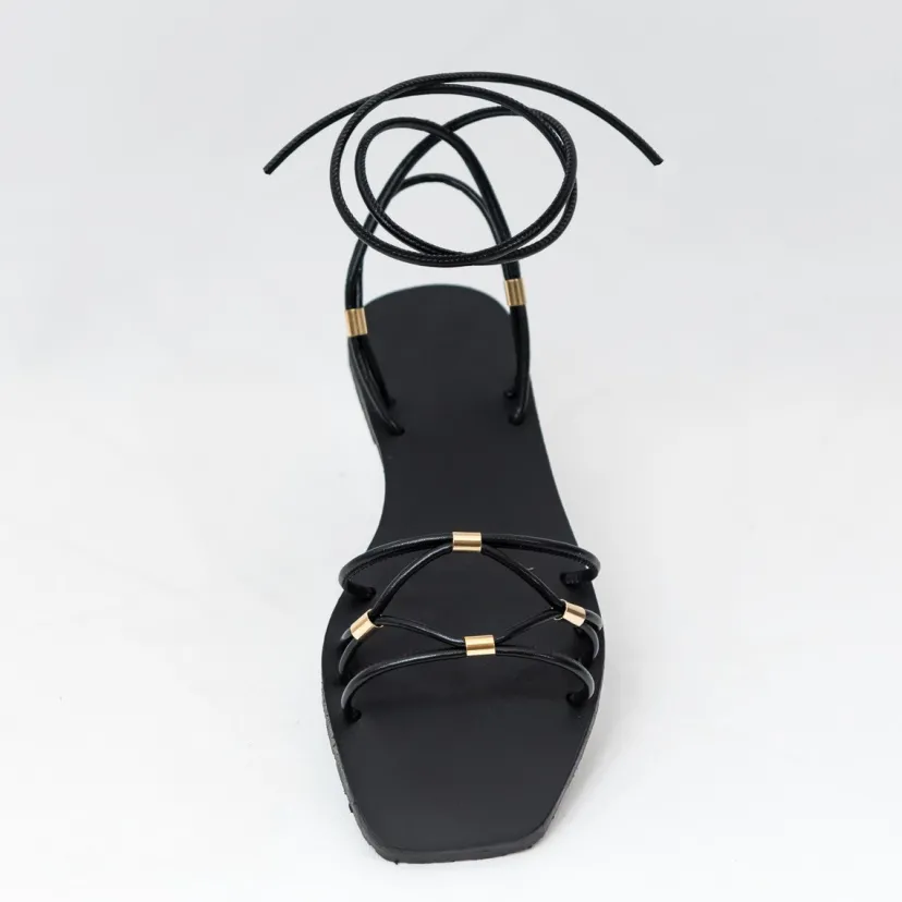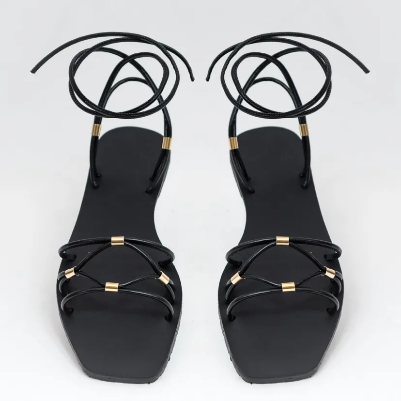 Bring your Greek Goddess out in these strappy Black Sandals. All sandals are made from chemical-free natural tan leather and will comfortably wear in quickly, and age to perfection.
