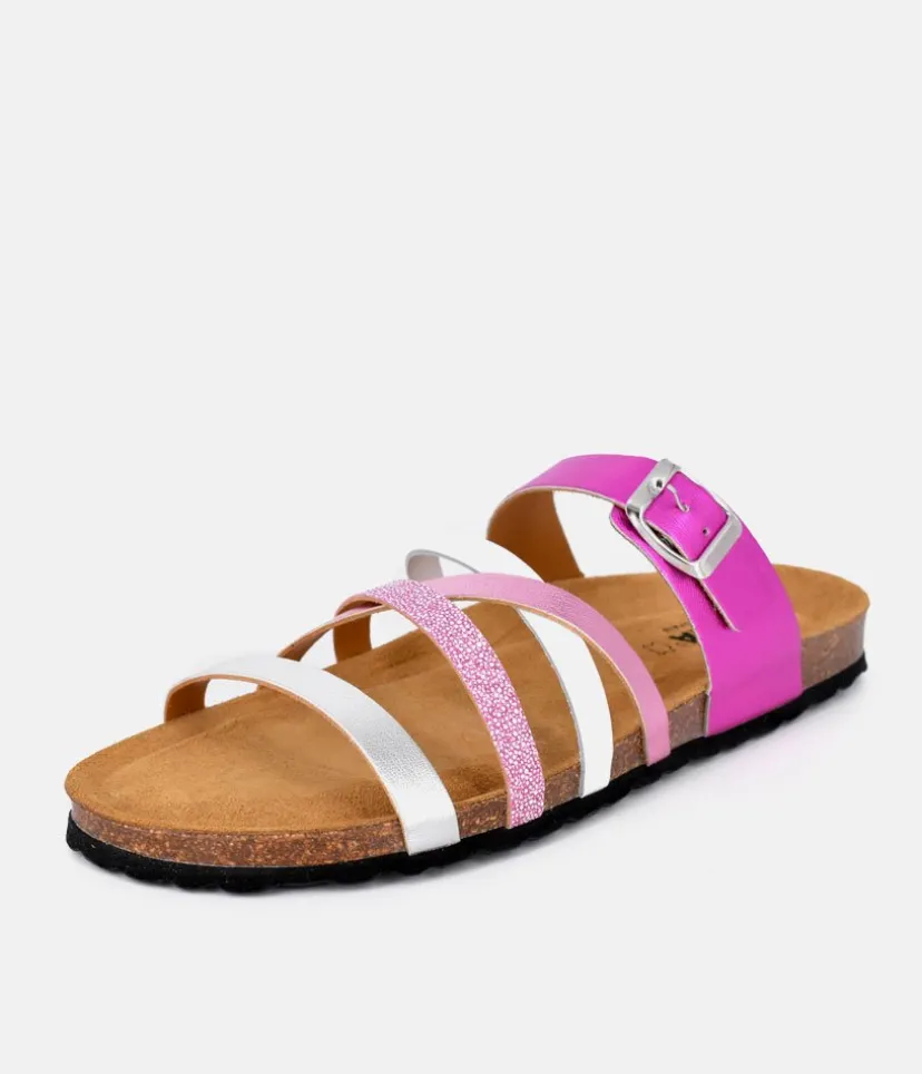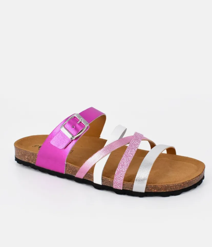 This Super Stylish sandal stands out with it’s Mix of Colour and types of Leather used to give them a totally unique finish. The contoured cork footbed ensures a very comfortable fit. A great style perfect for holidays to take you from day to night!