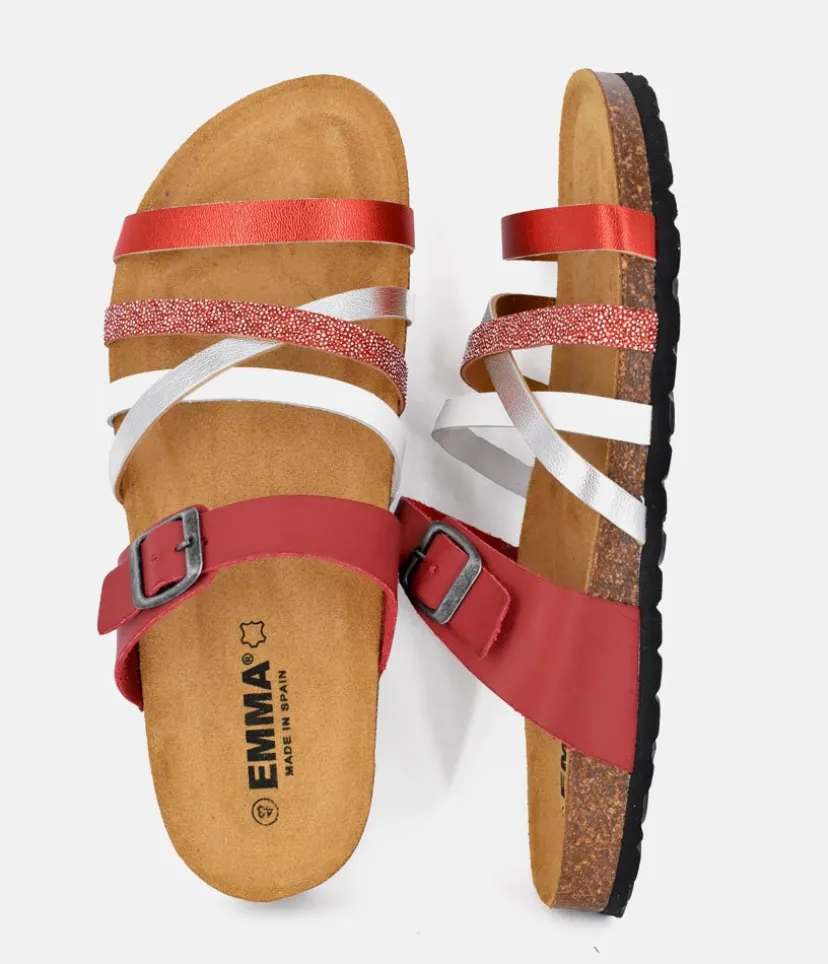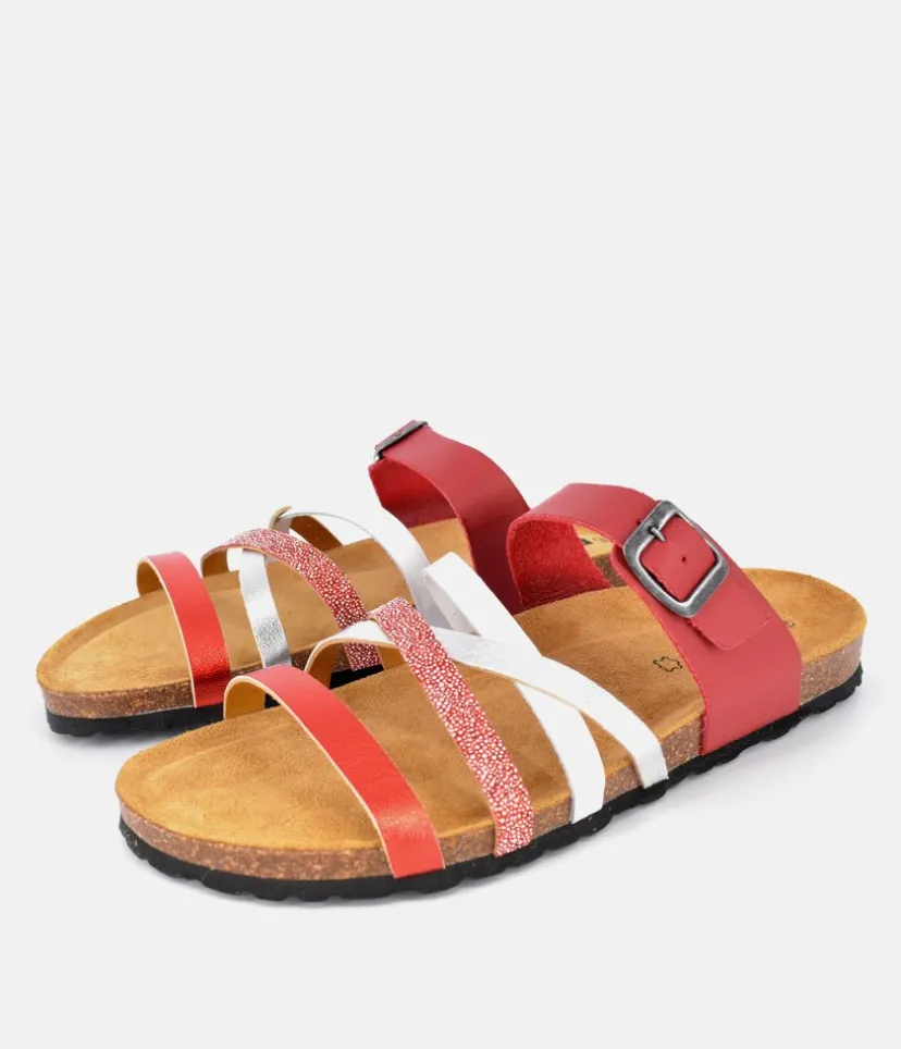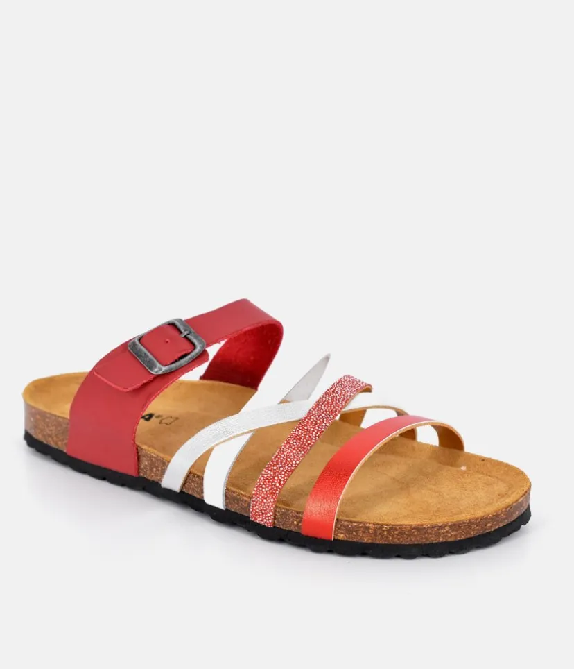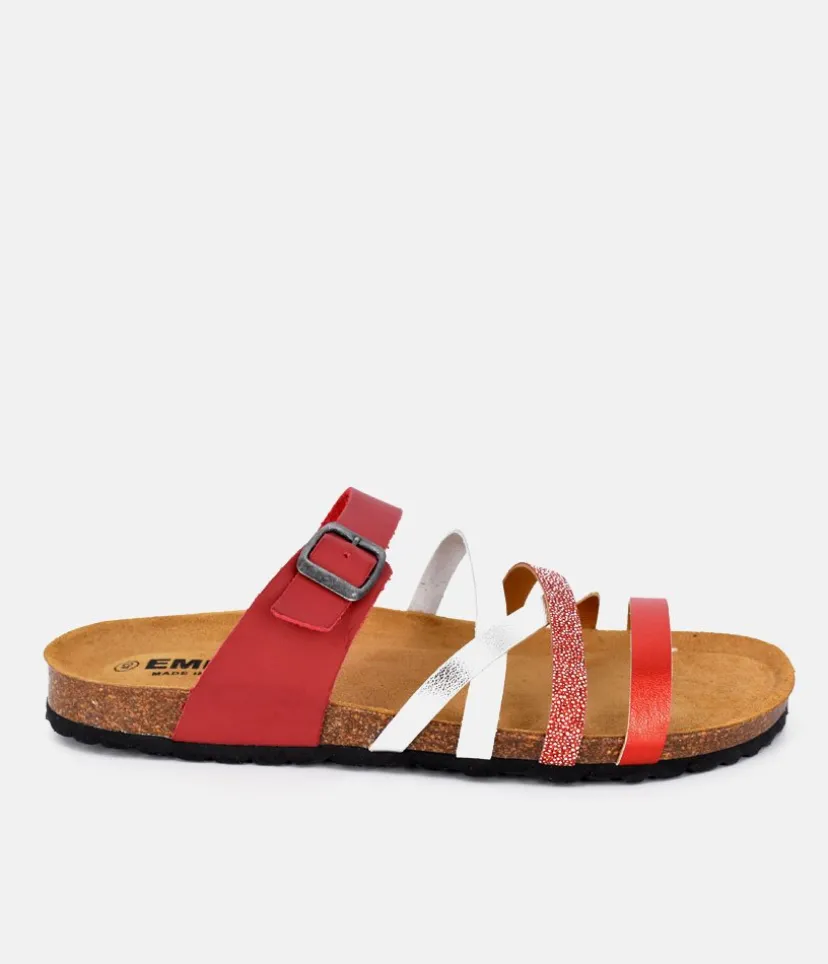 This Super Stylish sandal stands out with it’s Mix of Colour and types of Leather used to give them a totally unique finish. The contoured cork footbed ensures a very comfortable fit. A great style perfect for holidays to take you from day to night!