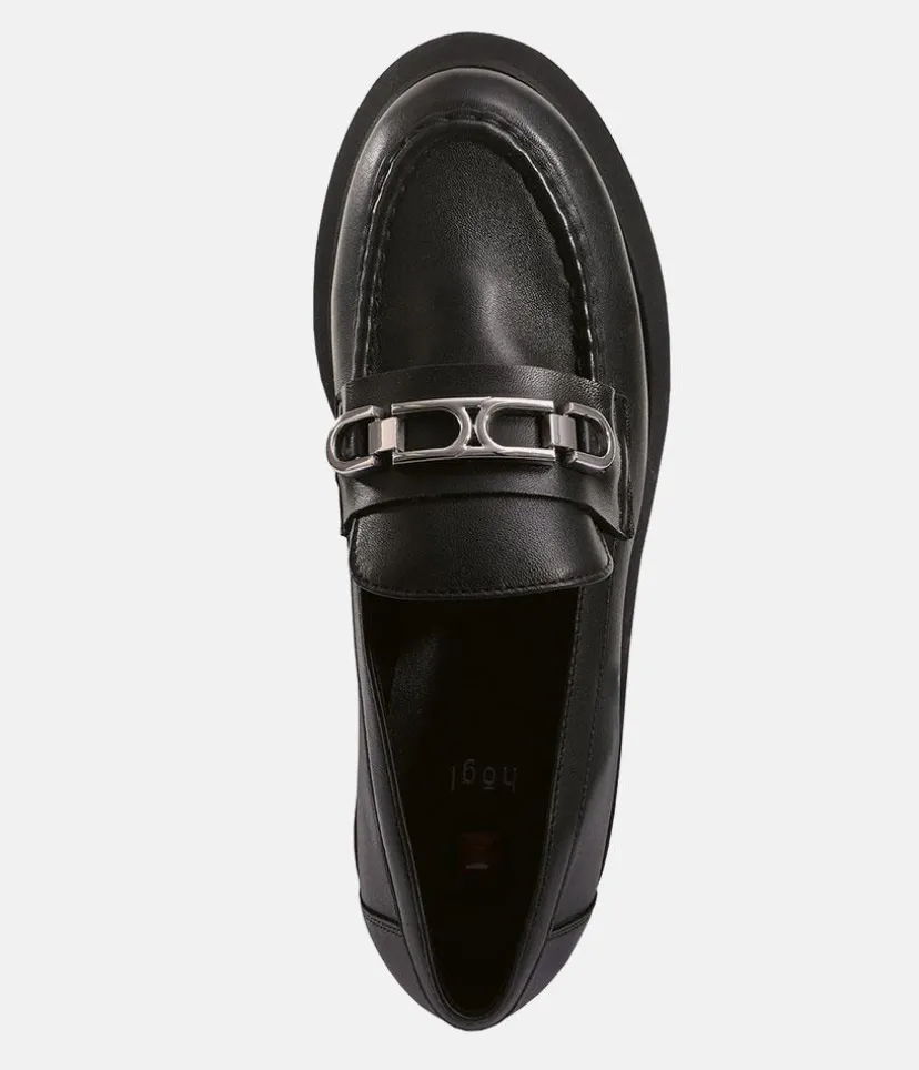 These Gorgeous leather loafers from Hogl with a decorative link detail are modern styling wonders. The classic, design with emphasised block heels add the perfect finishing touch to trousers with wide cut legs or dress- or skirt-based outfits. An essential companion this season.