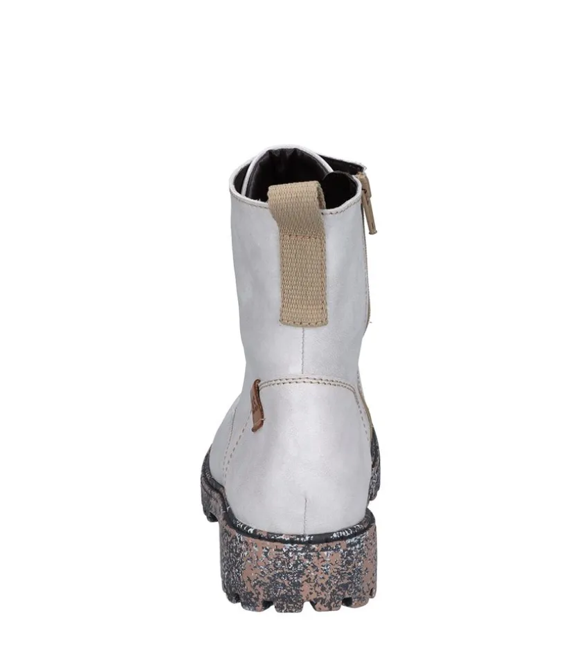 A Tall ankle boot from Josef Seibel finished in soft supple leathers and a fabulous chunky contrasting coloured sole . This ankle boot also features a rear pull tab and lace up fastening for all day comfort and style this season. With soft velour linings, a modern block heel and a cushioned removable insole these boots will be a great addition to your wardrobe for all seasons.