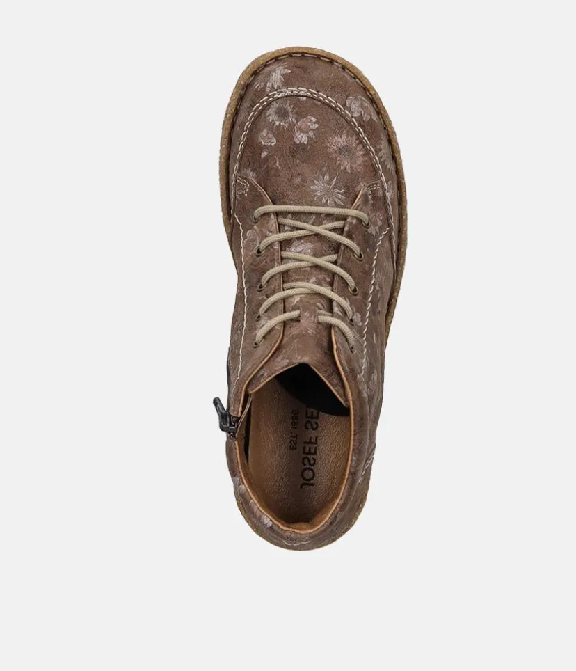 This casual ankle boot has comfort credentials that will keep you on your feet all day long. With this Josef Seibel style finished in soft supple leather featuring a pretty floral print, feeling comfortable never looked so good!. Featuring a soft, cushioned removable insole, and plenty of padding incorporated for added comfort around your ankle. Sitting atop a lightweight, durable and flexible hand-stitched natural finish sole and finished with a contrasting lace.