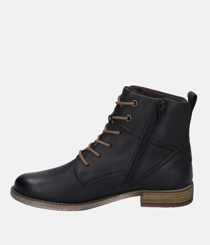 Update your winter wardrobe with this ankle boot from Josef Seibel with versatile lacing and stitch detailing. Crafted using high quality leather for a premium finish and elevated on a practical block heel, these soft leather boots fulfill the must-have requirements for a warm, comfortable and stylish choice.