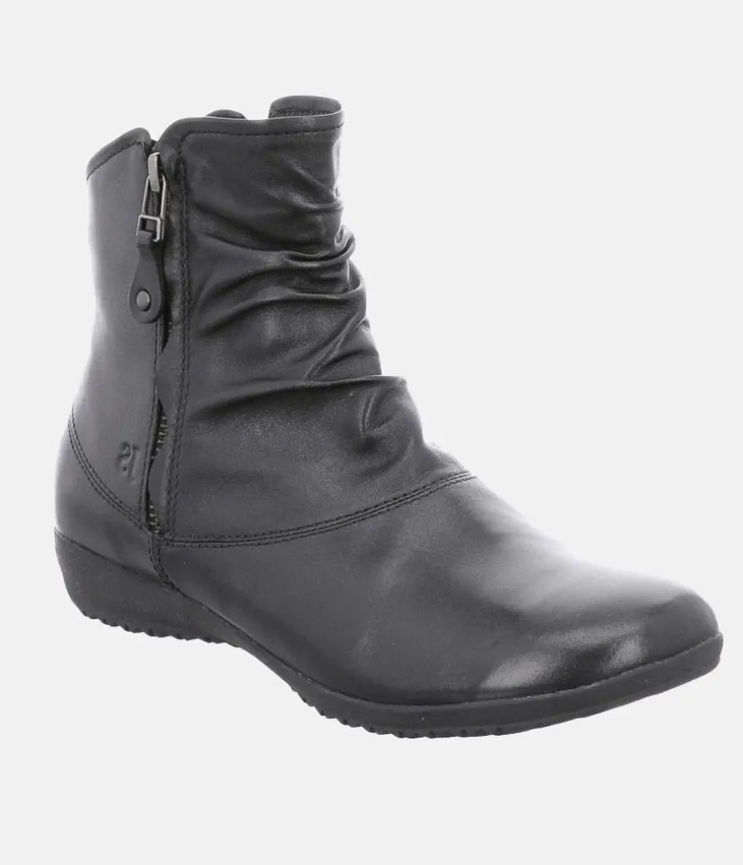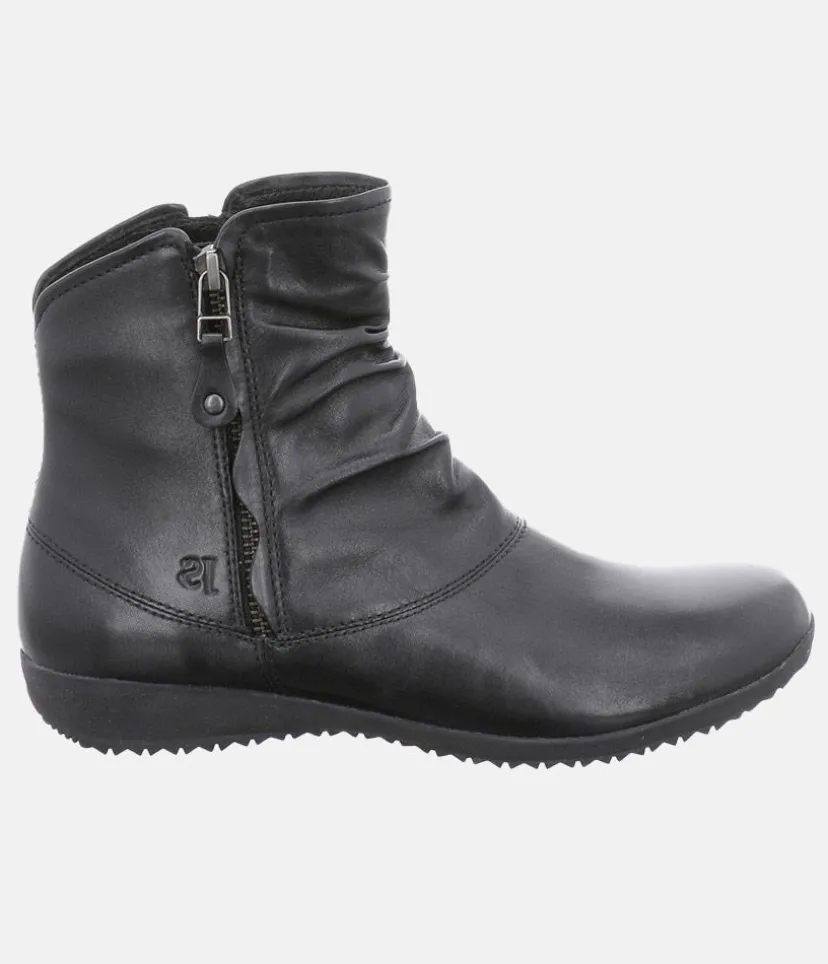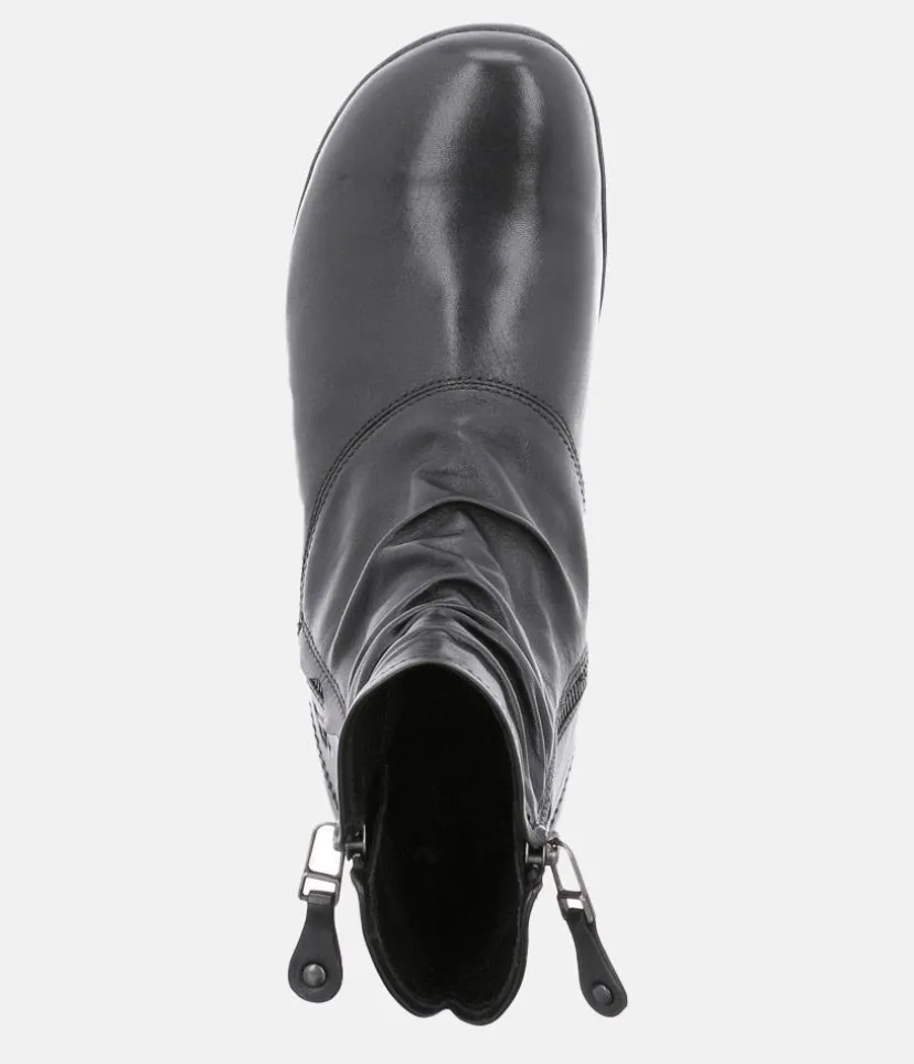A Premium leather boot from Josef Seibel with stylish ruching that adds texture to this wardrobe-staple. This design does not sacrifice comfort or practicality in the pursuit of style. The soles ensure a fantatic grip, the Zips on each side ensure they are really easy to put on and take off and the ultra-soft textile linings will warm cold toes on those chillier days.