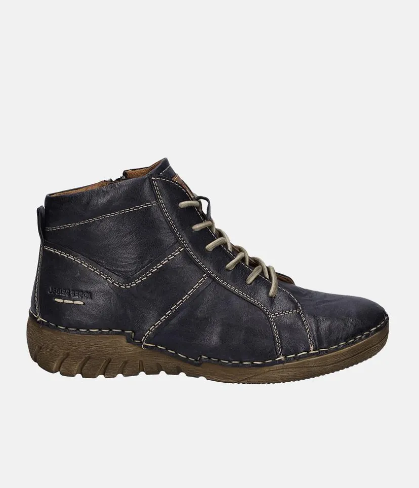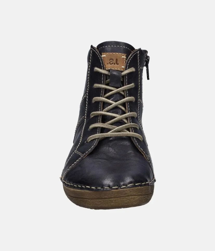 These leather ankle boots from Josef Seibel with laces and modern contrast, stitching throughout, will have you going about your daily business in complete comfort, whilst looking fabulous of course! Featuring asymmetrical design and inner zip for easy on-off. Featuring a lightweight sole which is both durable and naturally shock absorbent. Once you put them on you’ll never want to take them off!