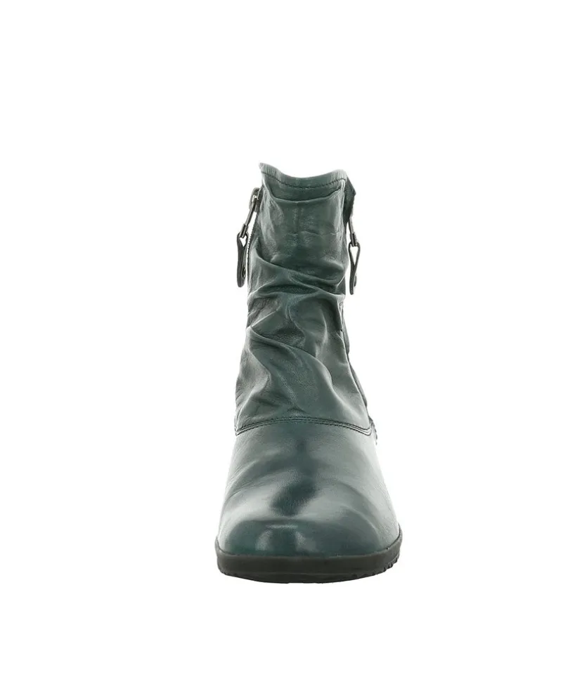 A Premium leather boot from Josef Seibel with stylish ruching that adds texture to this wardrobe-staple. This design does not sacrifice comfort or practicality in the pursuit of style. The soles ensure a fantastic grip, the Zips on each side ensure they are really easy to put on and take off and the ultra-soft textile linings will warm cold toes on those chillier days.
