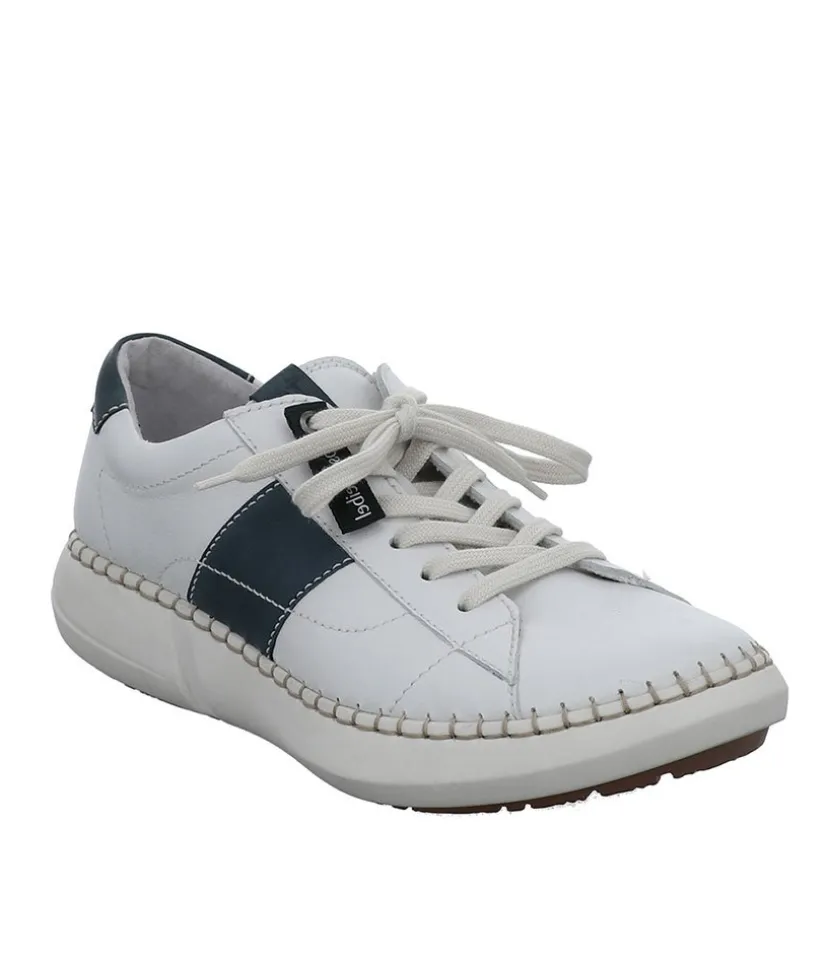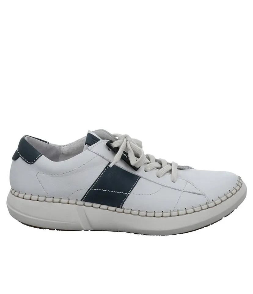 A casual fashion trainer is a must-have for any wardrobe. The style features a White upper with Navy Trim detail with quirky stitch details around the sole. Sitting atop a flexible and lightweight PU sole unit and a cushioned leather footbed for support and comfort underfoot.