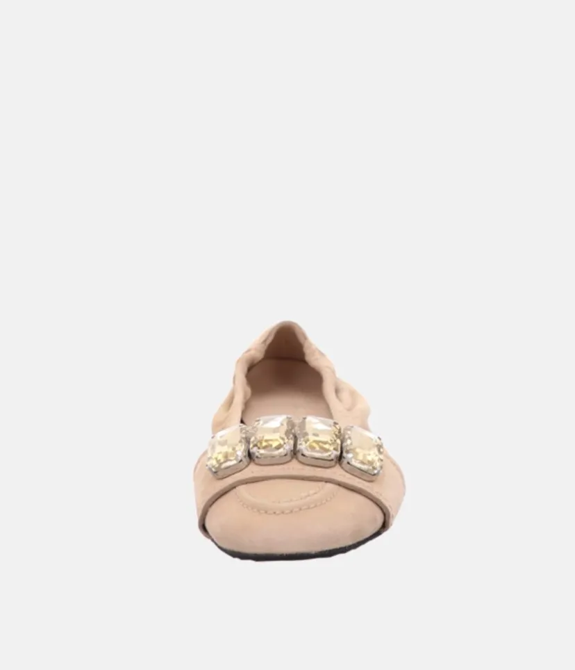 A classic and on trend ballerina model from Kennel & Schmenger. Feminine and elegant, this charming style features a stylish Crystal embellishment which adds a luxurious touch,. The super soft suede leather ensures a very comfortable wearing experience and the slightly elasticated side gives a secure fit.