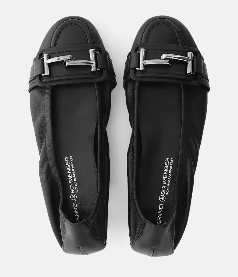 A classic and on trend ballerina model from Kennel & Schmenger. Feminine and elegant, this charming style features a stylish embellishment which adds a luxurious touch,. The super soft leather upper ensures a very comfortable wearing experience and the elasticated sides gives a secure fit.