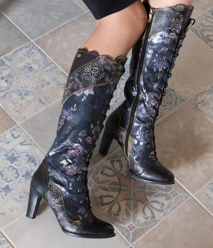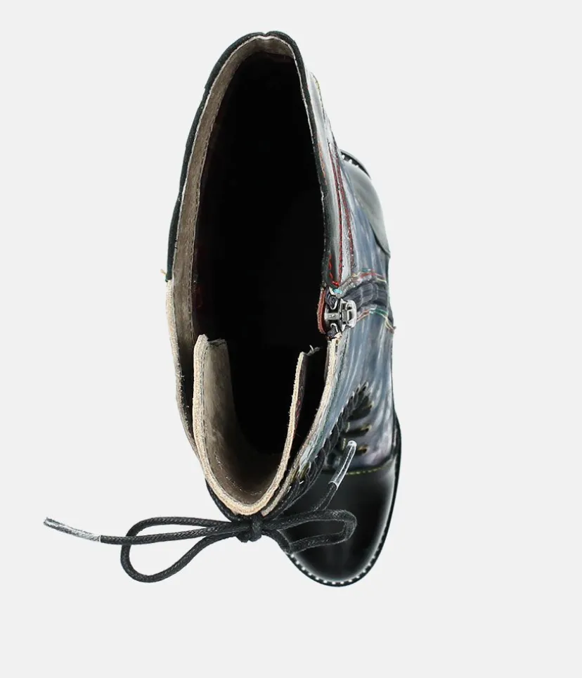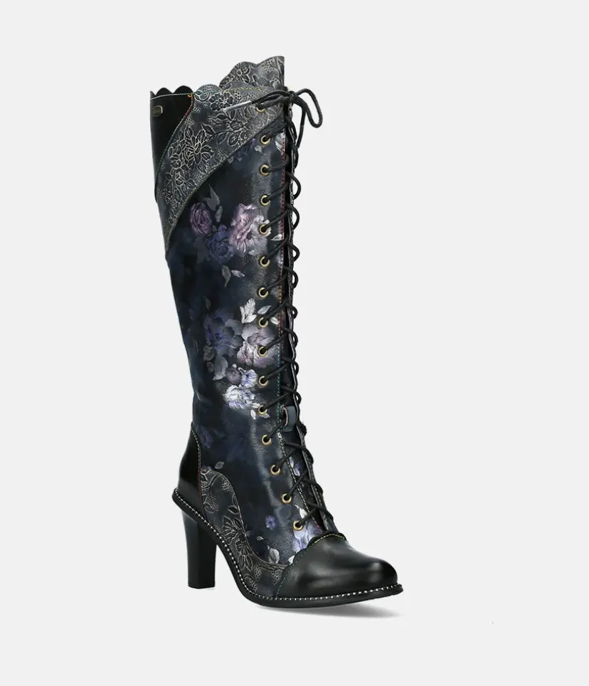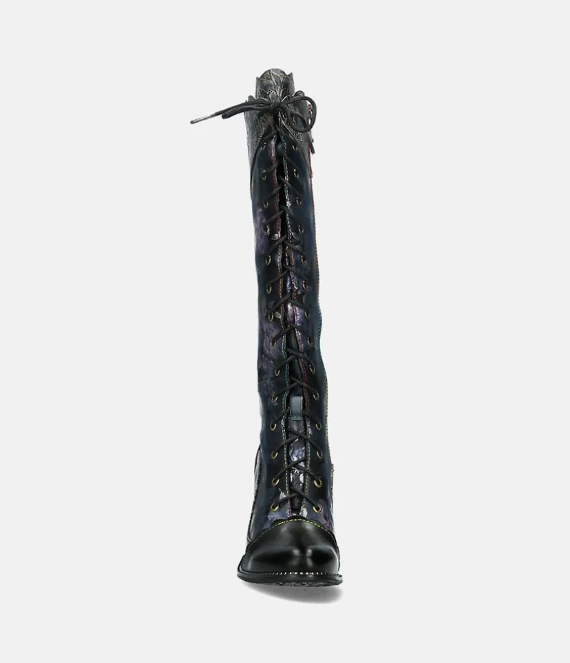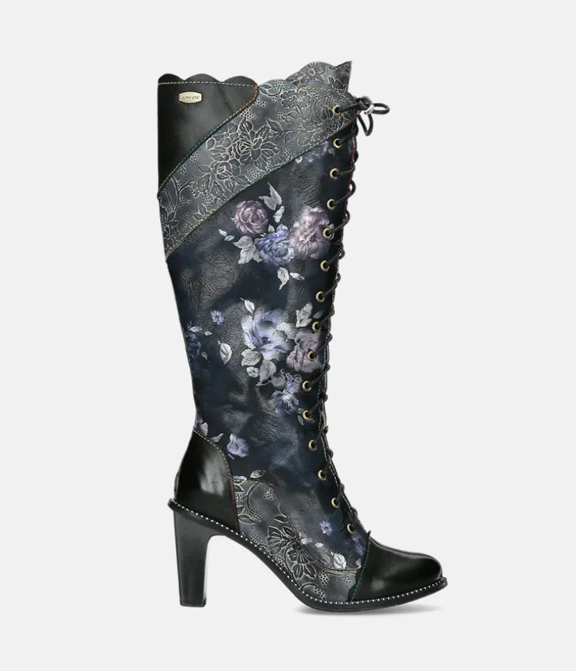 This is a fantastic long boot from Laura Vita in Black with a fabulous pattern on the upper. These boots feature a lace up front to ensure an optimal and secure fit. Step into this season with these stunning boots to elevate any outfit and add some colour to your wardrobe!