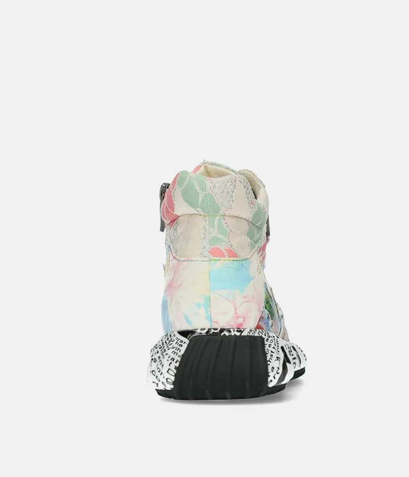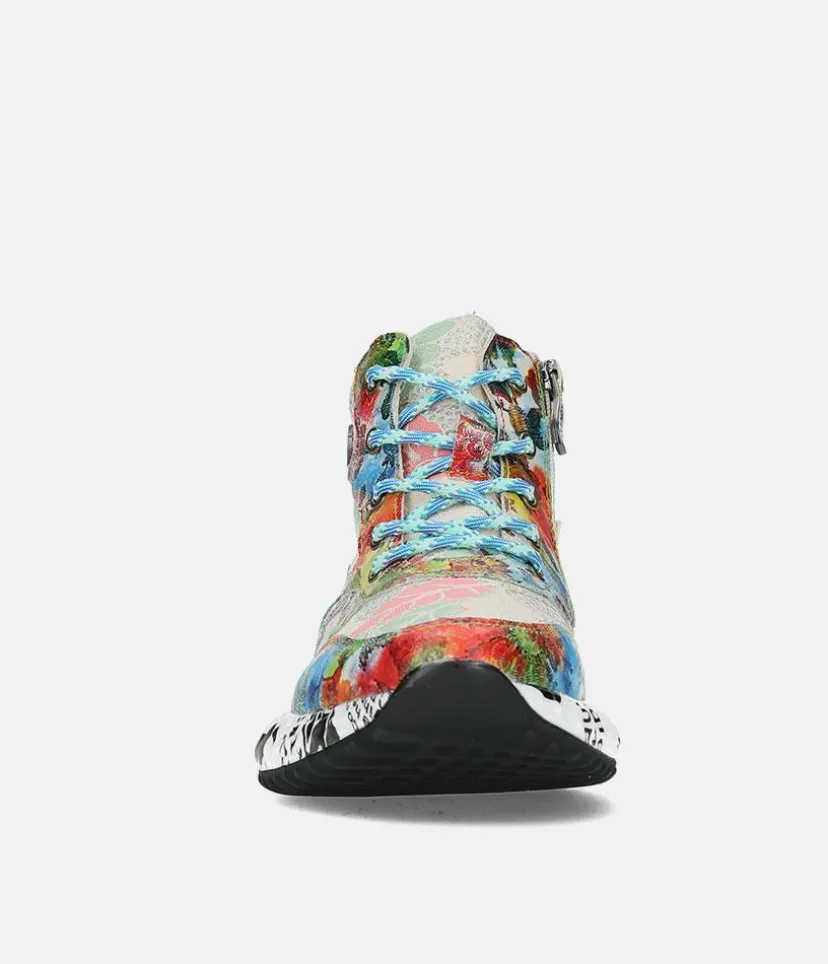 This is Gorgeous Hi-Top fashion trainer from Laura Vita features a beautiful colourful upper. This style is sure to add to fun to your wardrobe!